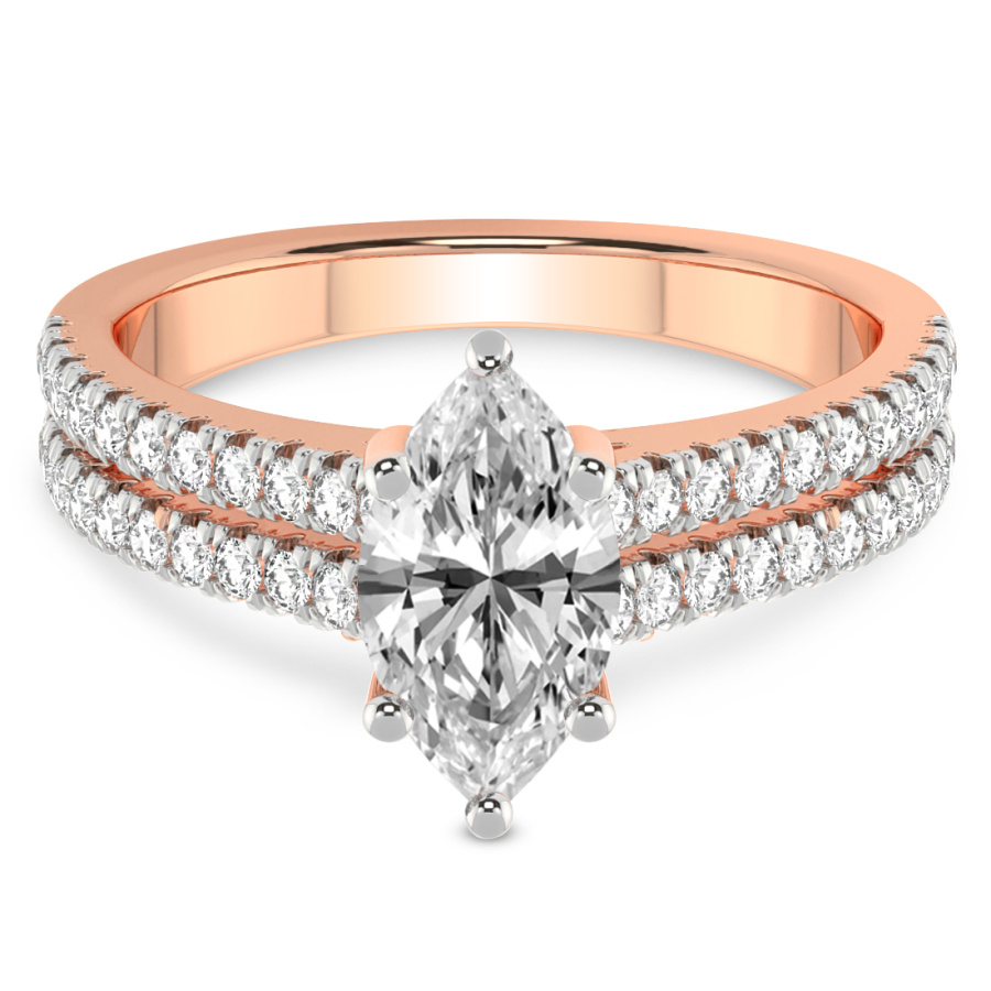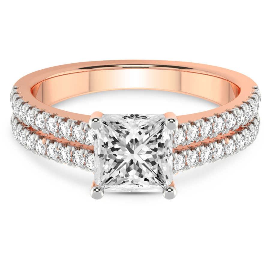 This Beatrice Secret Halo Double Band Lab Diamond Ring is a Asscher shape ring Engagement type 18k Rose Gold