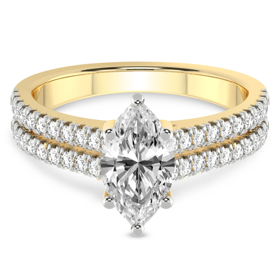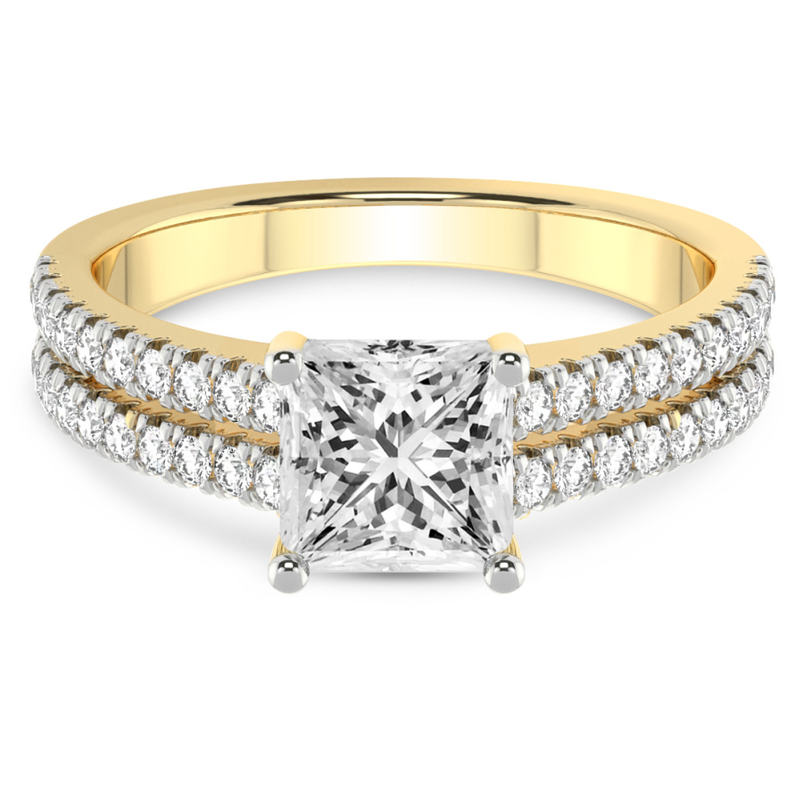 This Beatrice Secret Halo Double Band Lab Diamond Ring is a Asscher shape ring Engagement type 18k Yellow Gold