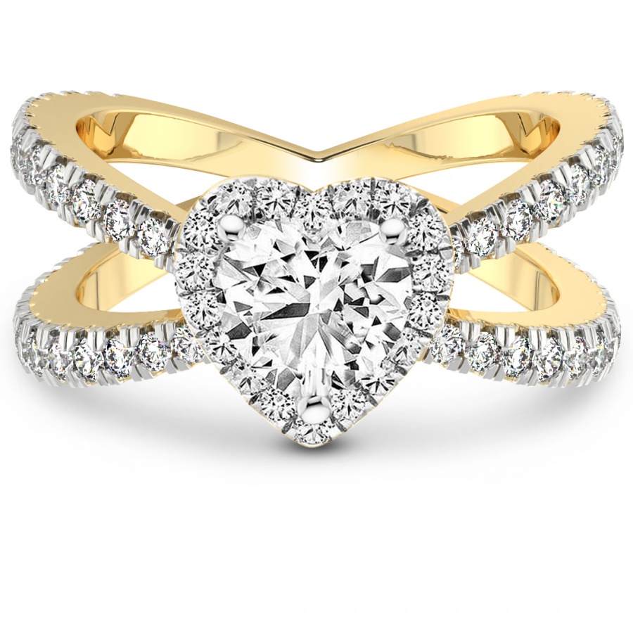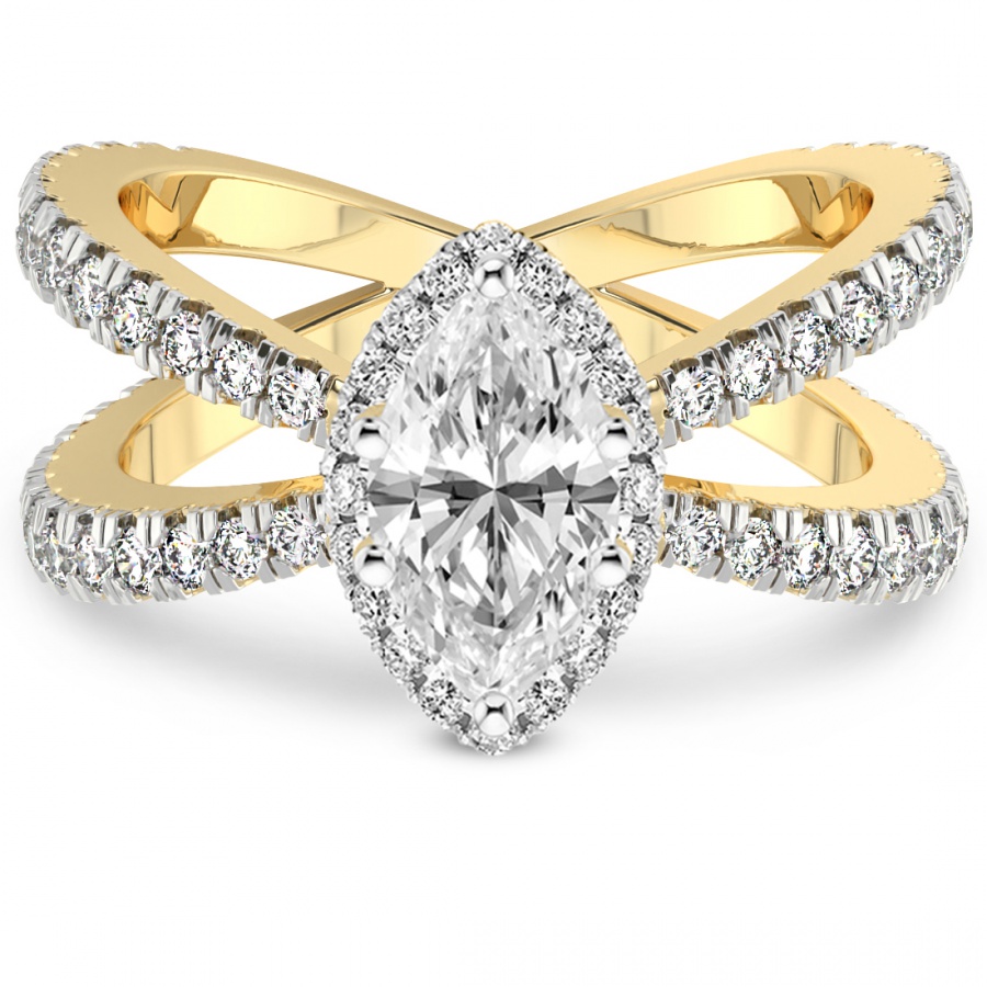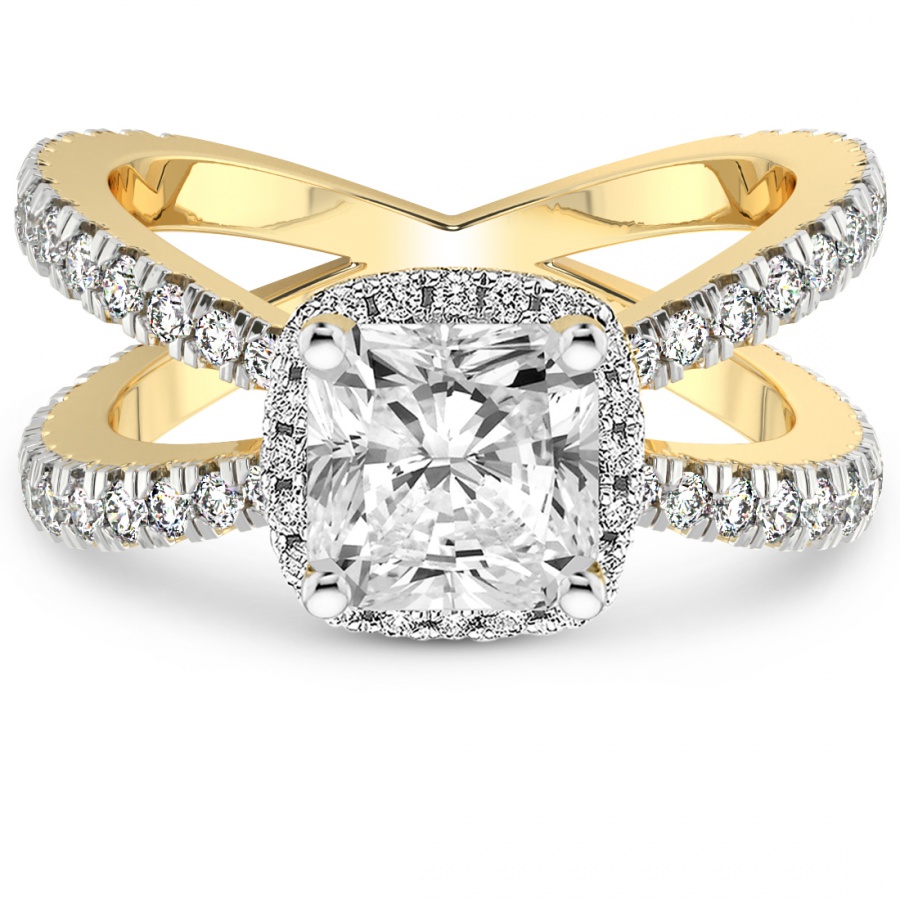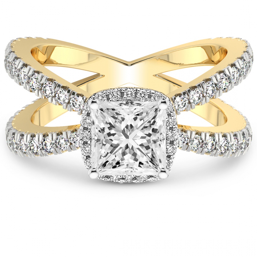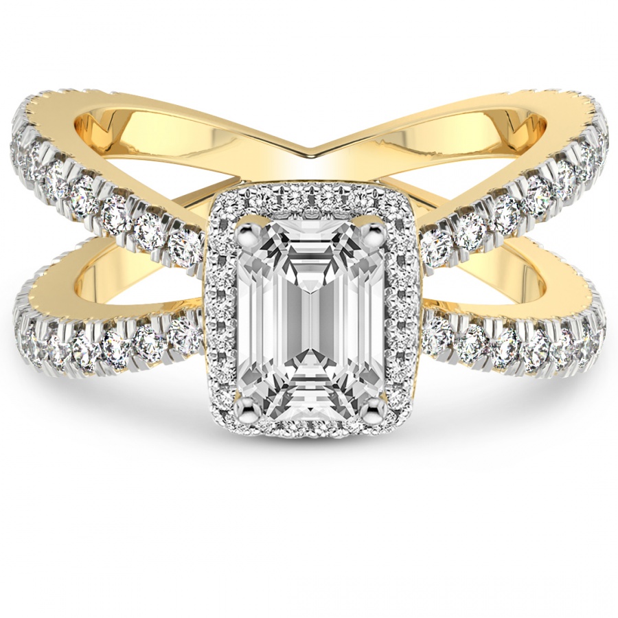This Blythe Criss Cross Halo Lab Diamond Ring is a Asscher shape ring Engagement type 18k Yellow Gold