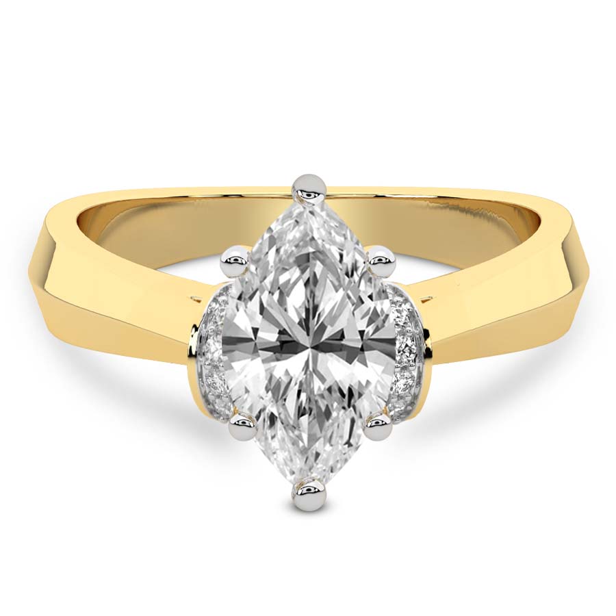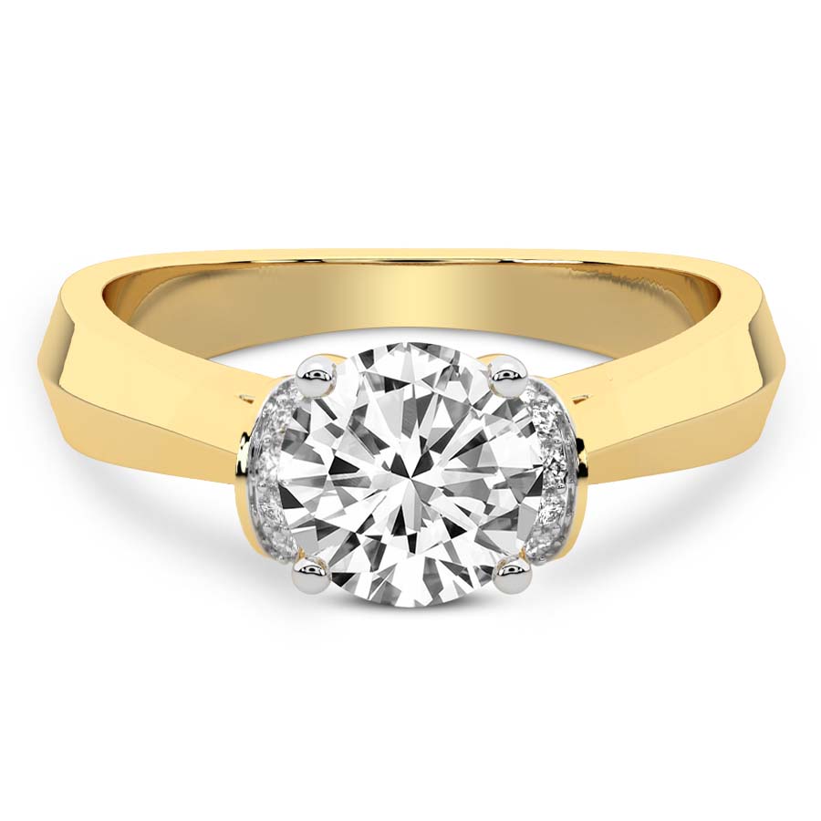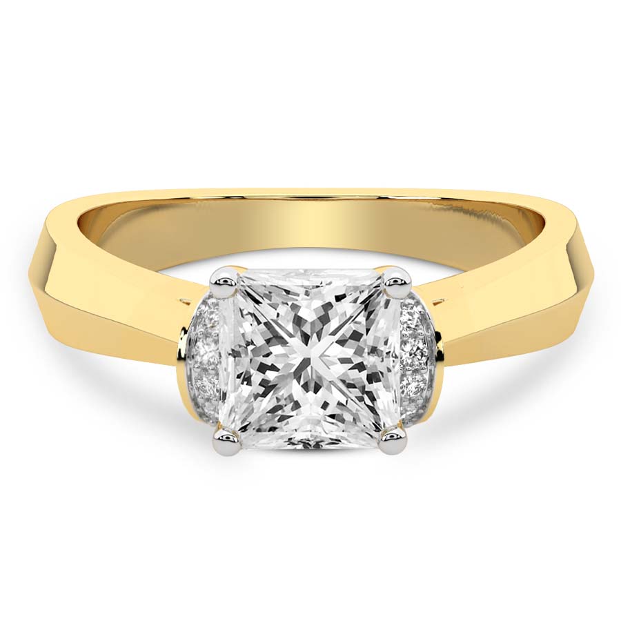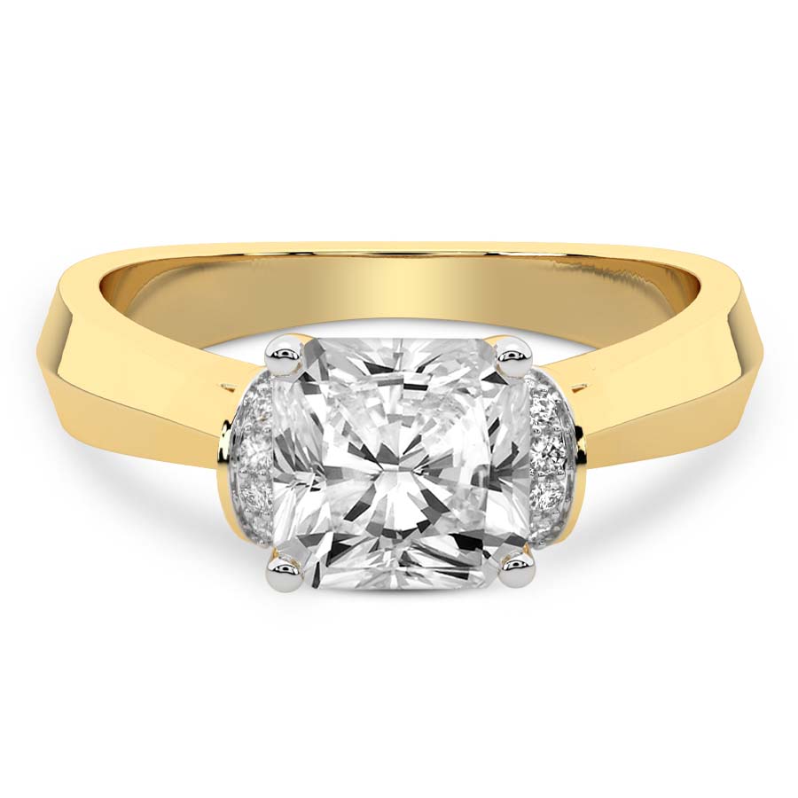 This Clementine Side Cuff Lab Diamond Ring is a Asscher shape ring Engagement type 18k Yellow Gold