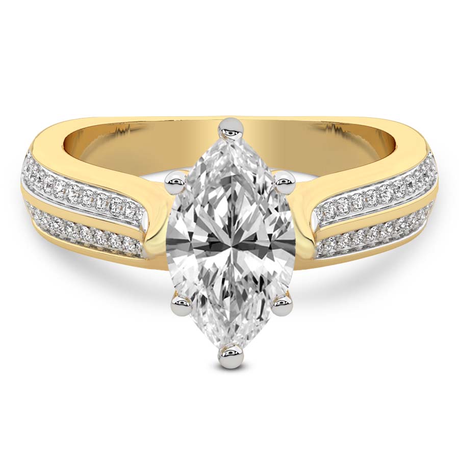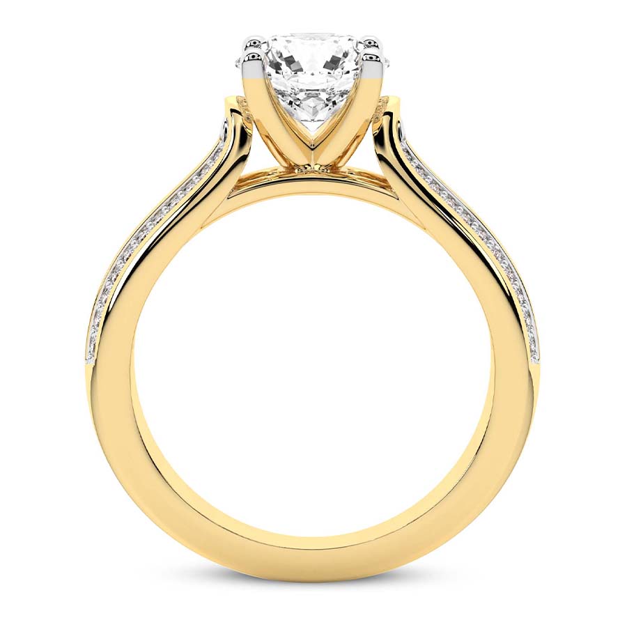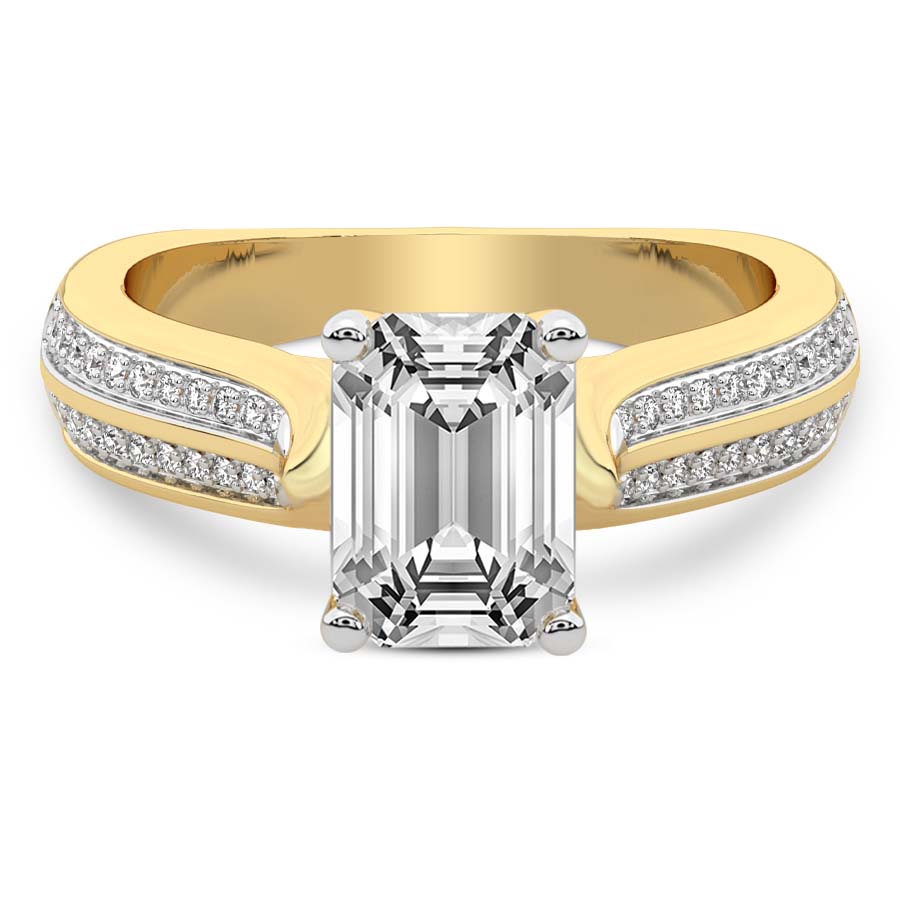 This Matilda Side Stone Lab Diamond Ring is a Asscher shape ring Engagement type 18k Yellow Gold