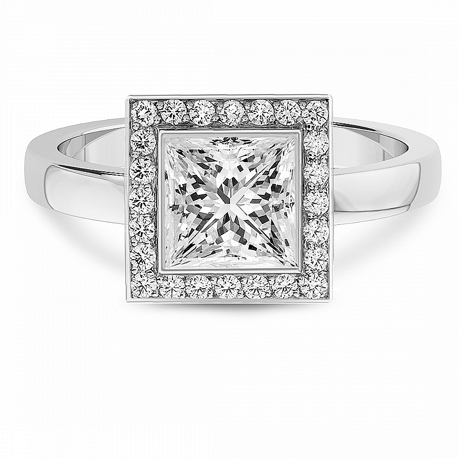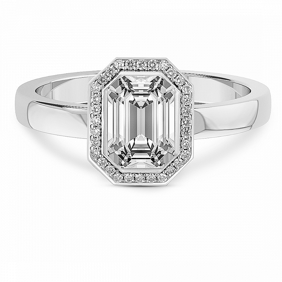 This Alina Dome Bezel Halo Lab Diamond Ring is a Asscher shape ring Engagement type pt White Gold