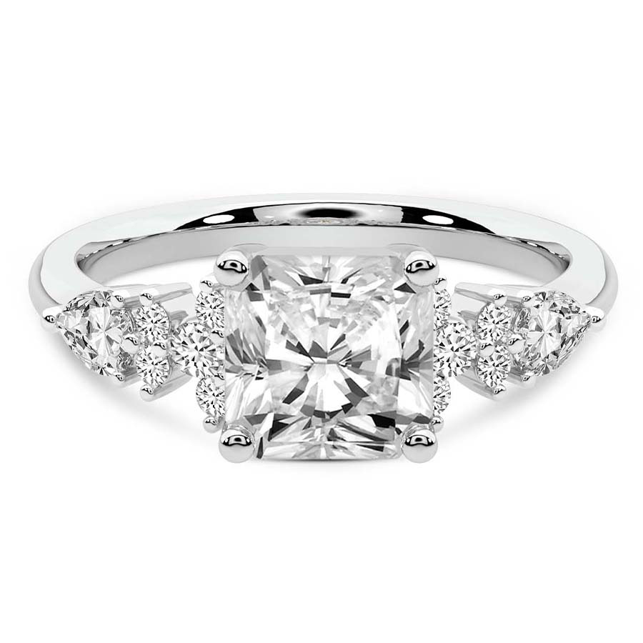 This Ava Emma Side Stone Lab Diamond Ring is a Asscher shape ring Engagement type pt White Gold