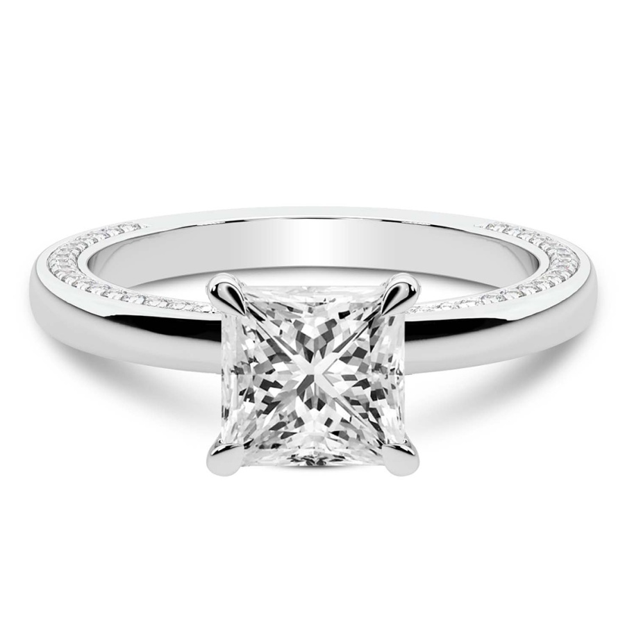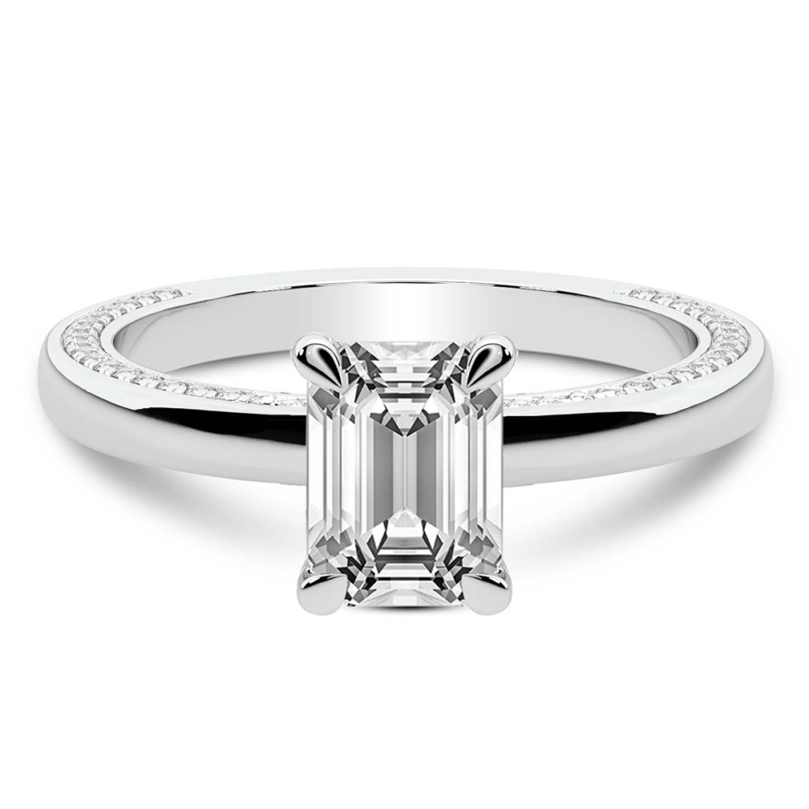 This Cora Lab Diamond Studded Petite Solitaire Lab Diamond Ring is a Asscher shape ring Engagement type pt White Gold