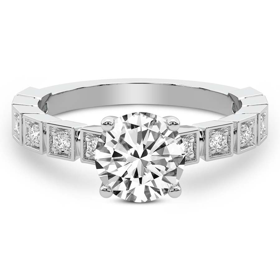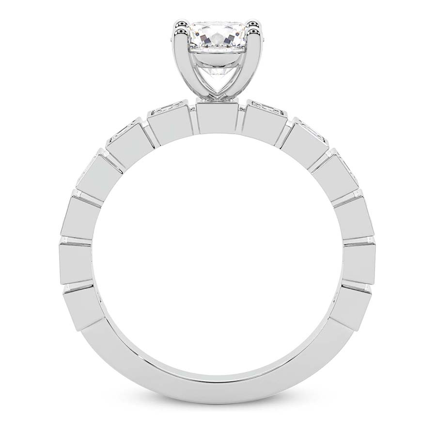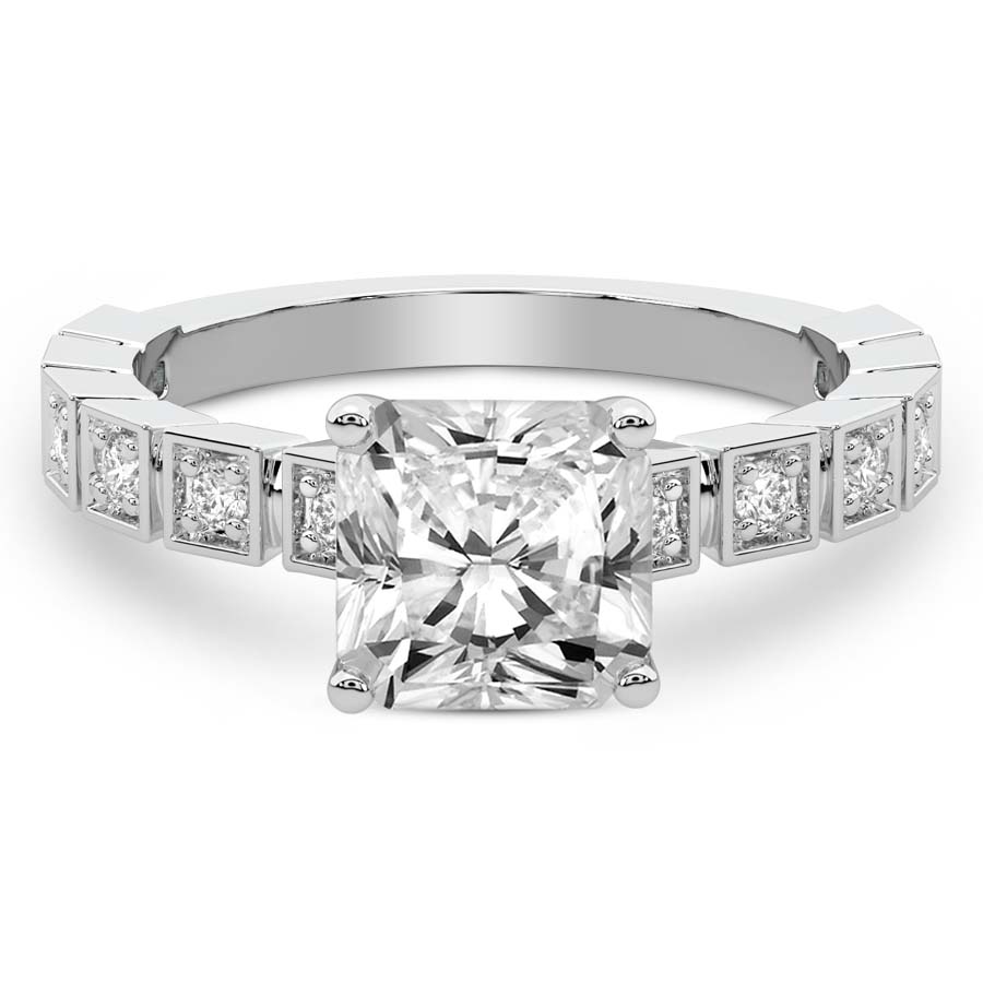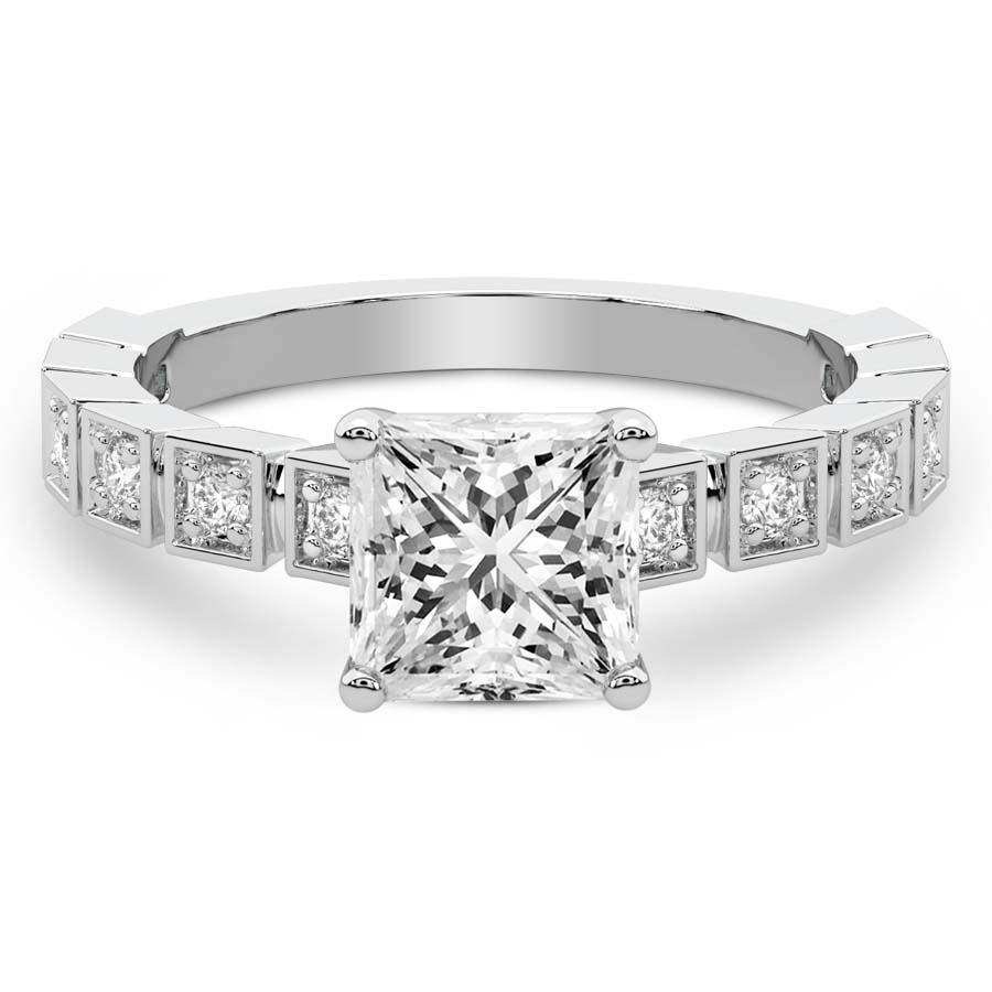 This Delphine Side Stone Lab Diamond Ring is a Asscher shape ring Engagement type pt White Gold