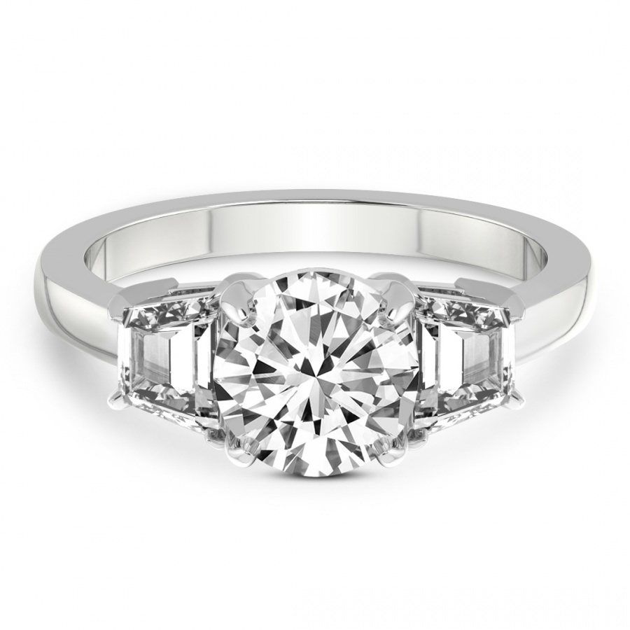 This Fiona Three Stone Side Trapezium Lab Diamond Ring is a Asscher shape ring Engagement type pt White Gold