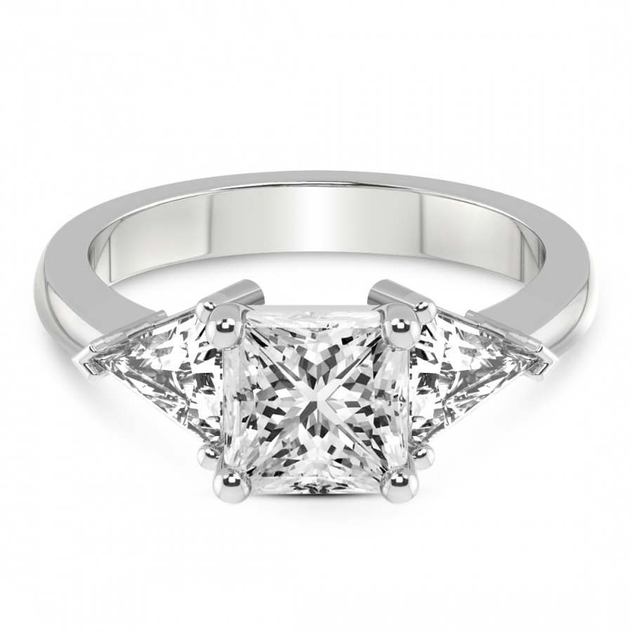 This Séverine Three Stone Side Trillion Lab Diamond Ring is a Asscher shape ring Engagement type pt White Gold