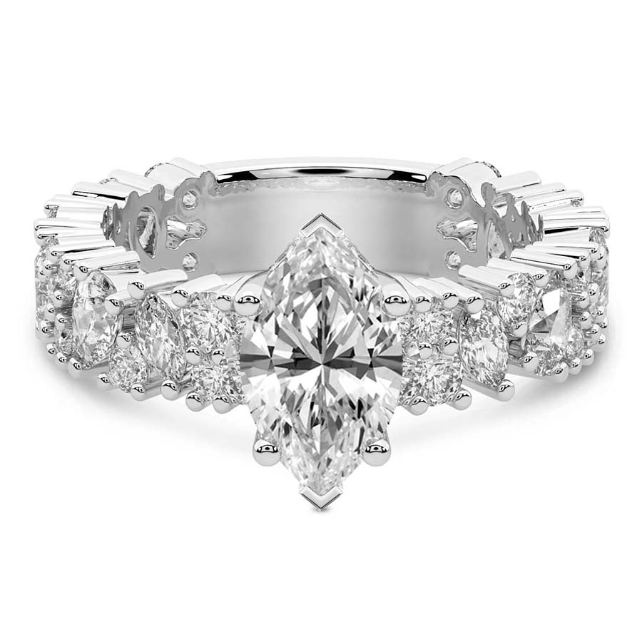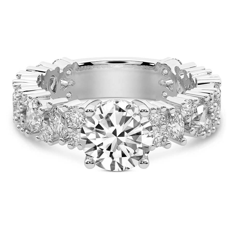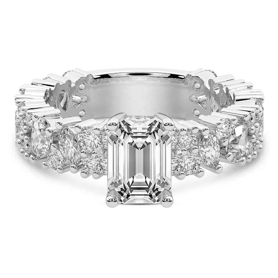 This Zoé Side Stone Encrusted Lab Diamond Ring is a Asscher shape ring Engagement type pt White Gold