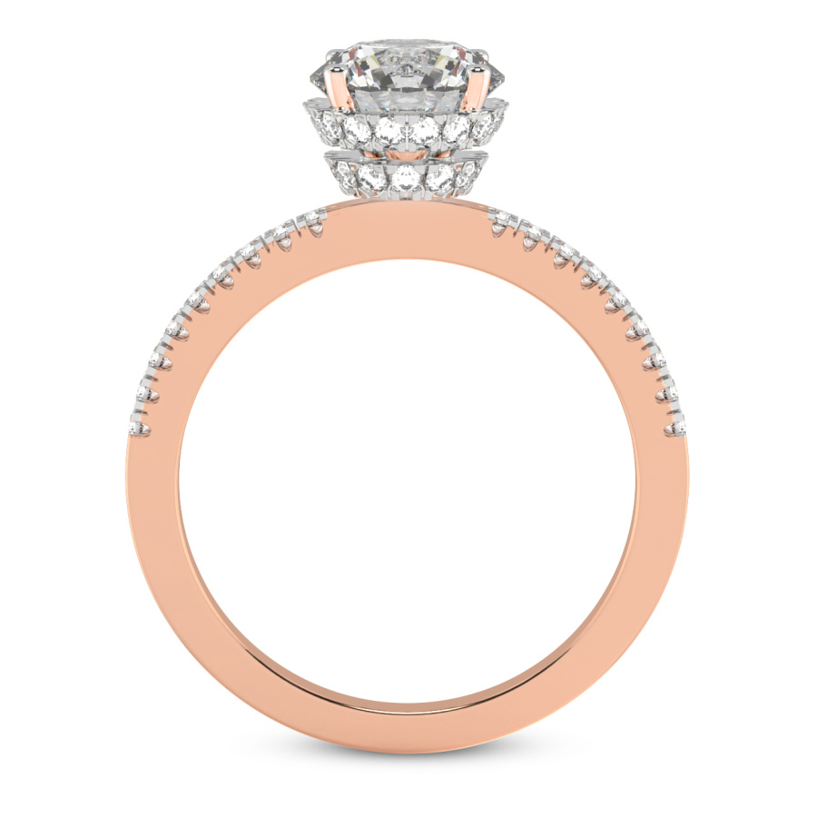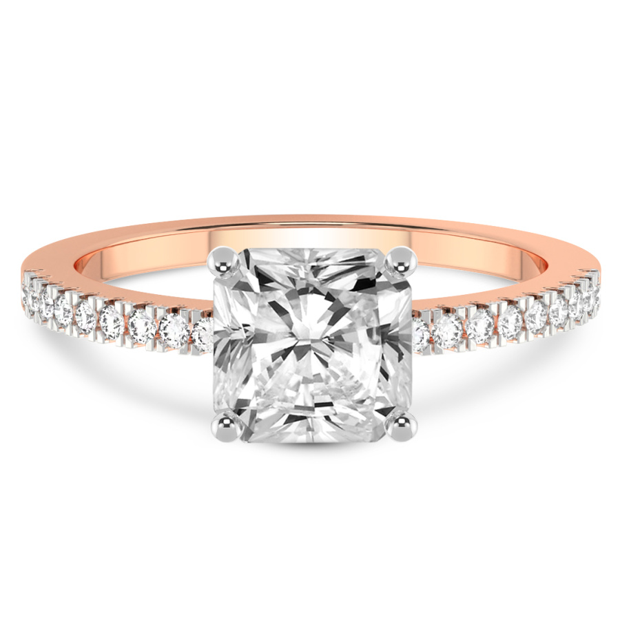 The Aaliyah Secret Double Halo Eternity Ring represents the pinnacle of high-end jewelry design, meticulously crafted in radiant 18k rose gold to symbolize a love that is both profound and eternal. At the heart of this breathtaking engagement ring lies a magnificent cushion-cut center stone, celebrated for its unique blend of vintage charm and modern brilliance. This focal point is artfully enhanced by a sophisticated secret double halo, where layers of brilliant-cut diamonds are expertly pavé-set to capture and reflect light from every angle, creating an ethereal glow. The romantic warmth of the 18k rose gold provides an exquisite contrast to the icy fire of the diamonds, offering a look that is both timeless and distinctively feminine. Adding to its opulence, the ring features a full eternity band, with shimmering diamonds encircling the entire shank to represent an unbroken bond. Every facet of the Aaliyah ring is a testament to superior craftsmanship and architectural precision, designed for those who seek a balance of hidden details and overt luxury. Whether viewed from above or in profile, the intricate setting reveals a hidden depth of sparkle that ensures this piece remains a captivating treasure. Choosing this cushion-shape rose gold ring is an investment in unparalleled elegance, making it the perfect centerpiece for a lifetime of shared memories and a definitive statement of sophisticated style.