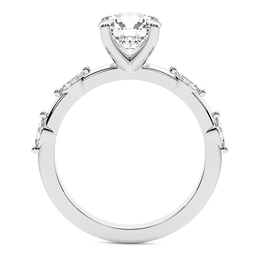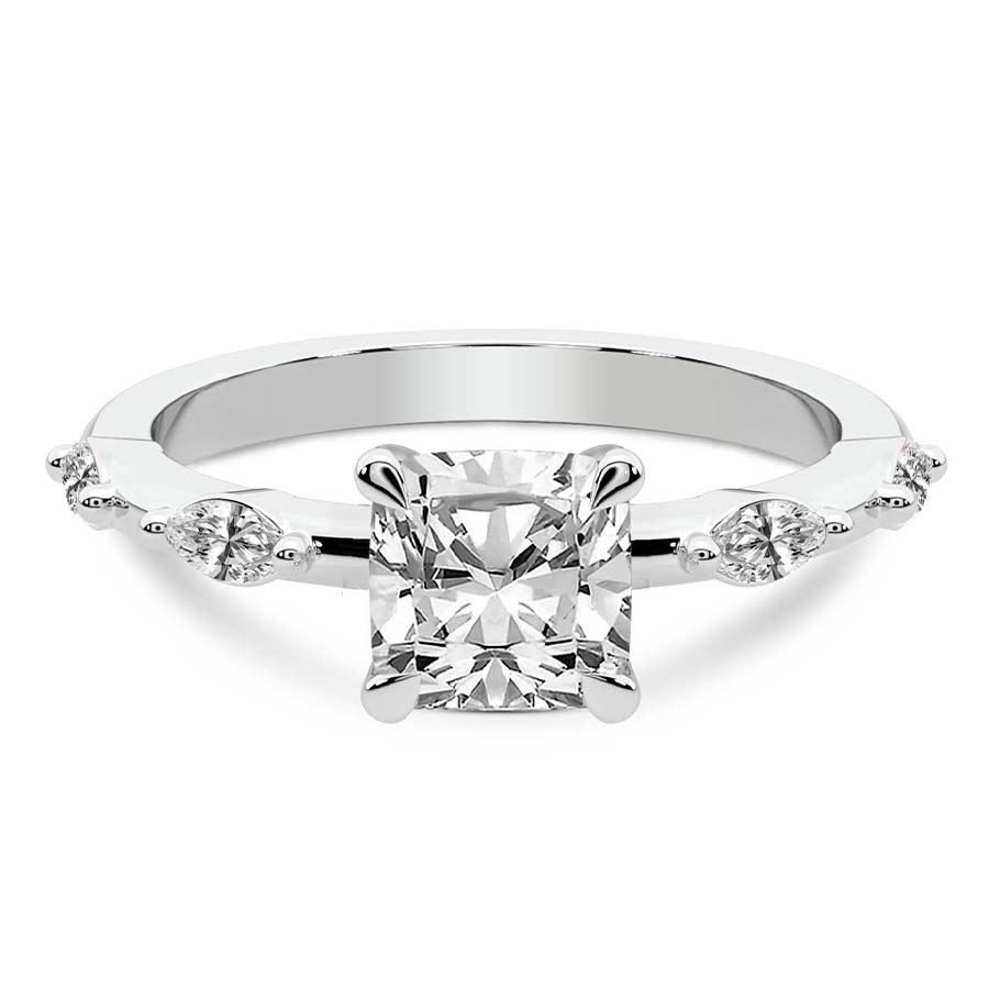 This Isadora Three Stone Side Pear Diamond Ring is a Cushion shape ring Engagement type pt Platinum