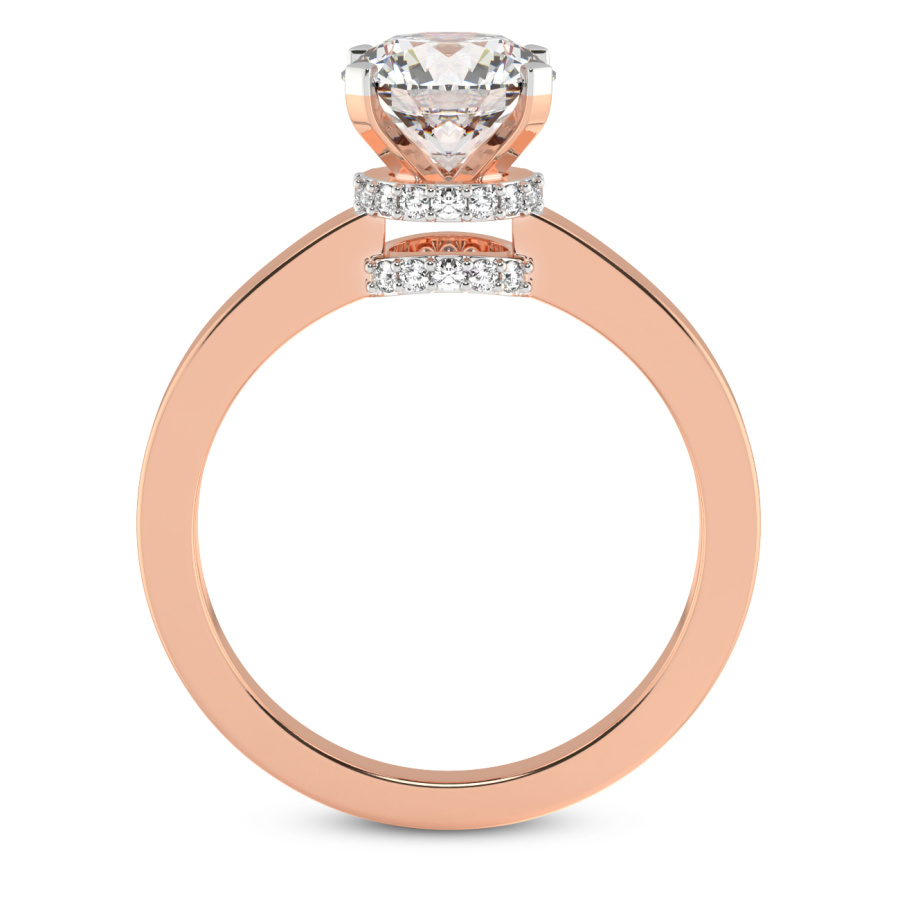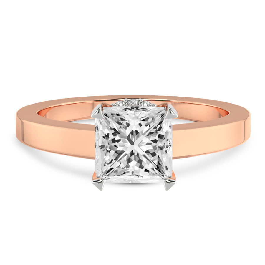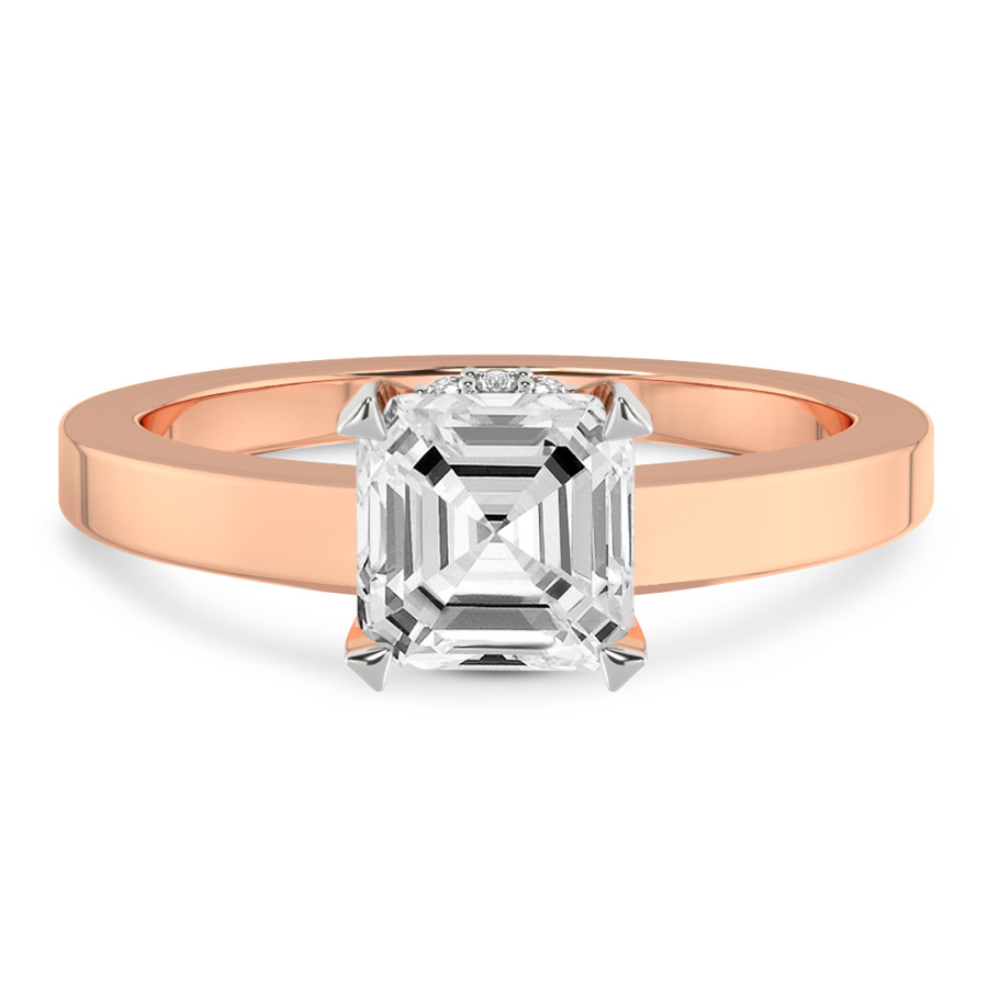 Exuding an air of timeless sophistication and modern romance, the Corinne Secret Halo Diamond Ring is a masterpiece designed for those who appreciate the finer nuances of high jewelry. At the heart of this exquisite piece lies a breathtaking emerald-cut center stone, celebrated for its clean lines and mesmerizing step-cut facets that evoke a sense of clarity and understated grandeur. This particular silhouette is a favorite among connoisseurs, offering a vintage allure that remains perpetually in style. Crafted in luminous 18k rose gold, the band provides a warm, romantic glow that perfectly complements the icy brilliance of the diamond. The rose gold setting is meticulously finished to ensure a seamless blend of durability and delicate beauty. What truly distinguishes the Corinne is its hidden treasure: a secret halo of brilliant-cut diamonds nestled discreetly beneath the center stone. This subtle detail ensures that the ring sparkles from every conceivable angle, offering a private shimmer known only to the wearer and those close enough to admire its intricate profile. The slender four-claw setting elevates the emerald diamond, allowing maximum light to pass through the stone while maintaining a secure and graceful silhouette. Whether as a symbol of an enduring commitment or a statement of personal style, this emerald shape engagement ring in 18k rose gold embodies the pinnacle of luxury craftsmanship. It is more than just a piece of jewelry; it is a legacy of love, designed to be cherished for generations to come.