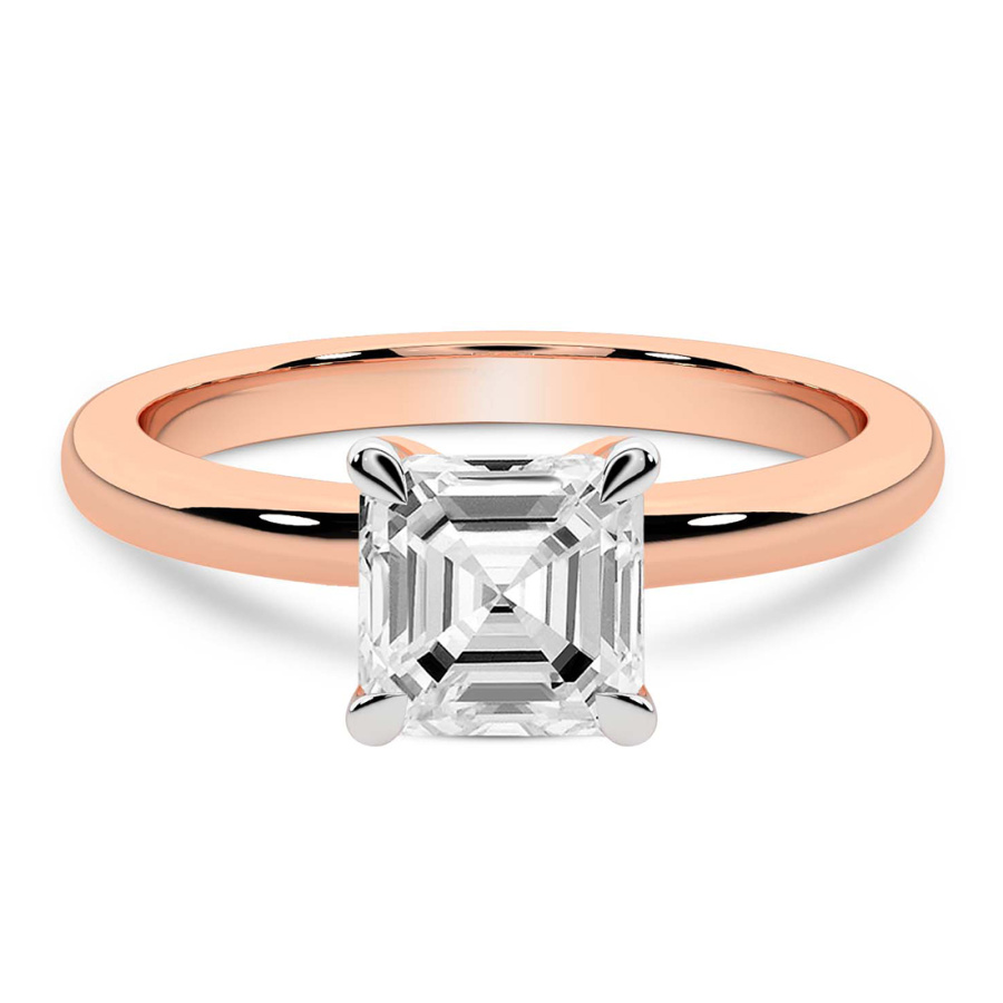 Embrace the ethereal beauty of a botanical masterpiece with this exquisite emerald shape engagement ring. Crafted in the warm, romantic glow of eighteen carat rose gold, this solitaire diamond ring captures the delicate essence of nature through its intricate daisy leaf and petal motif. At the heart of this design lies a breathtaking emerald cut diamond, celebrated for its hall-of-mirrors effect and sophisticated clarity. The elongated facets of the center stone offer a timeless silhouette that is both modern and regal. Surrounding the diamond, the artisan-crafted leaf details whisper of vintage charm and organic grace, ensuring that every angle of this piece tells a story of meticulous craftsmanship. This stunning ring is designed for the woman who seeks a unique blend of classic luxury and whimsical detail. The soft blush of the rose gold perfectly complements the icy brilliance of the diamond, creating a harmonious balance that radiates elegance. Whether chosen as a symbol of eternal love or a testament to personal style, this daisy leaf petal solitaire stands as a pinnacle of fine jewelry. It is more than just an engagement ring; it is a wearable work of art that captures the fleeting beauty of a garden in full bloom, preserved forever in precious metal and light. Elevate your proposal with a piece that reflects a sophisticated aesthetic and an appreciation for the natural world, ensuring a lifetime of brilliance and refined beauty.