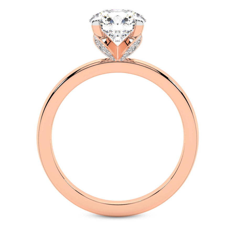This Daisy Leaf Petal Solitaire Diamond Ring is a Emerald shape ring Engagement type 18k Rose Gold