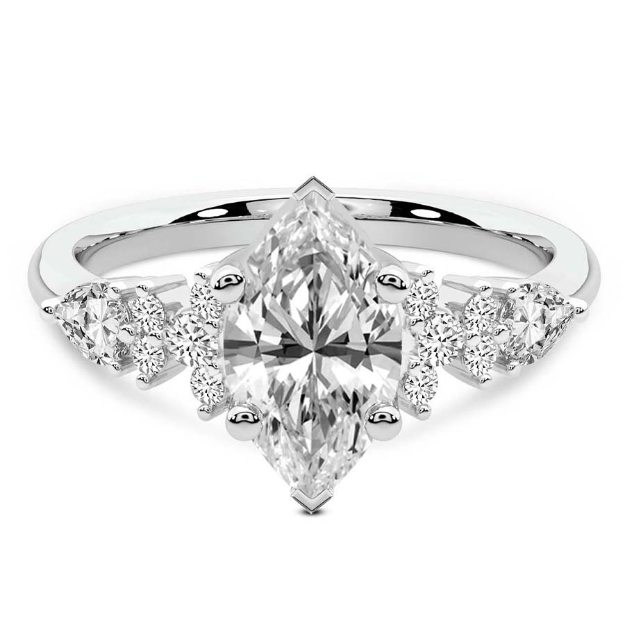 This Ava Emma Side Stone Ring is a Emerald shape ring Engagement type 18k White Gold