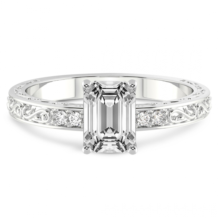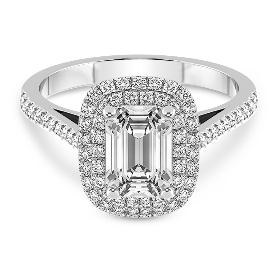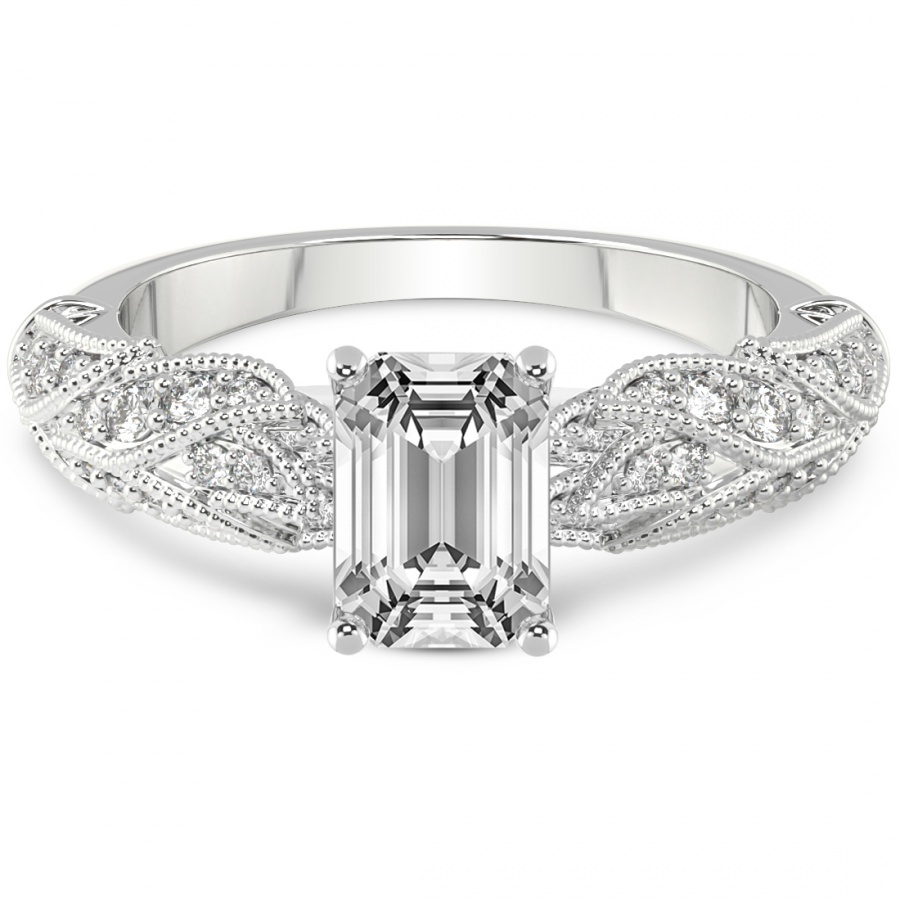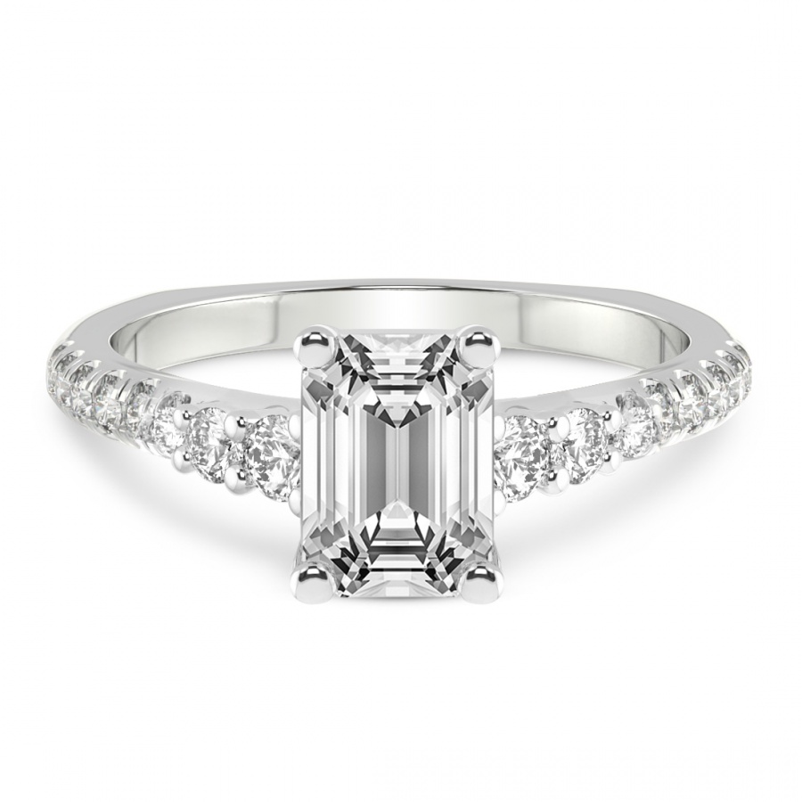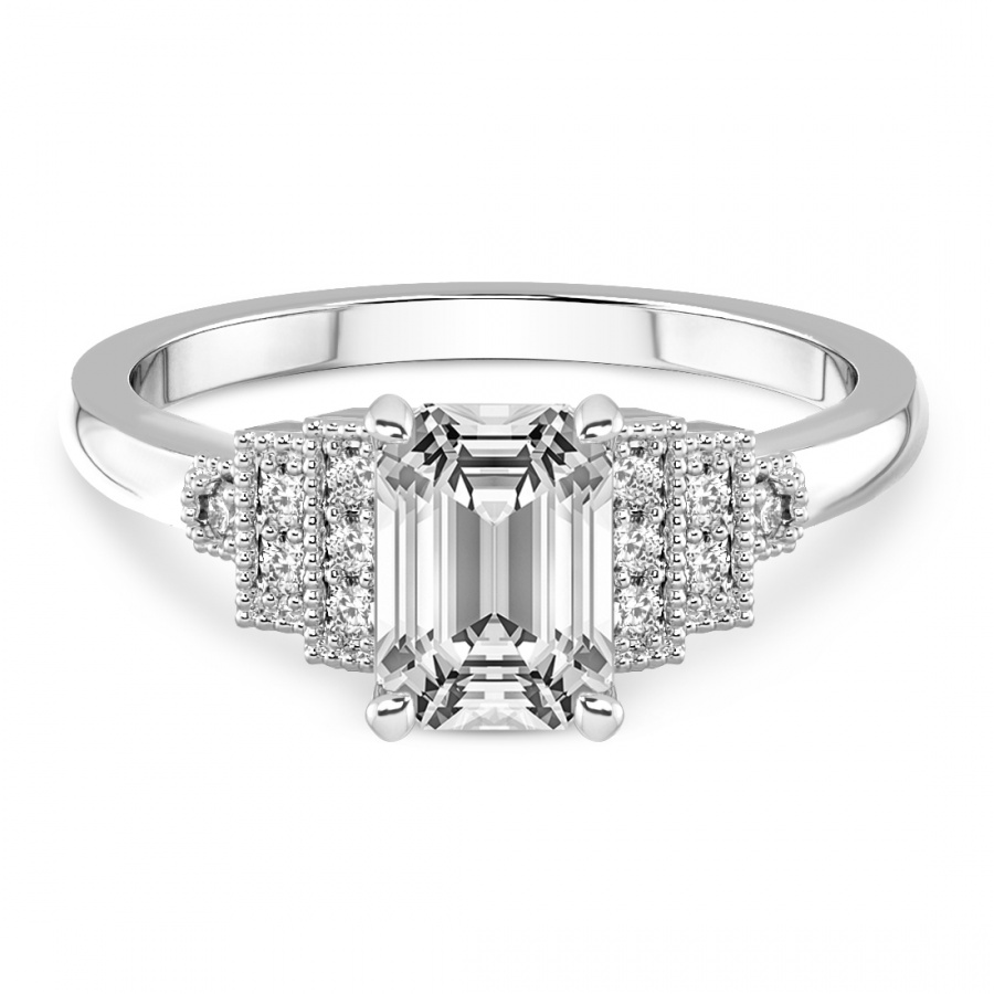 This Ella Floating Side Stones Diamond Ring is a Emerald shape ring Engagement type 18k White Gold