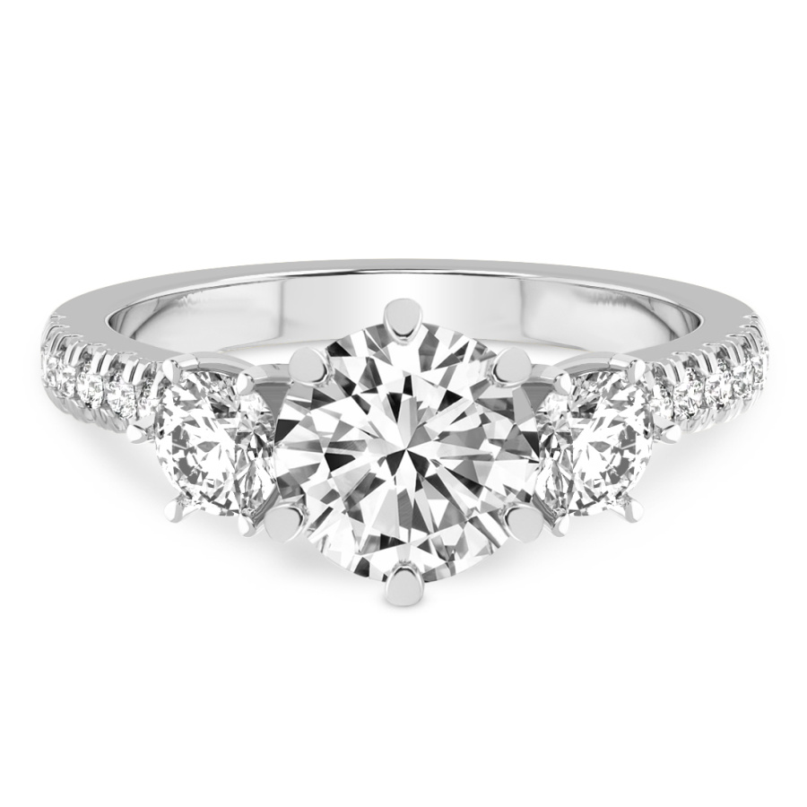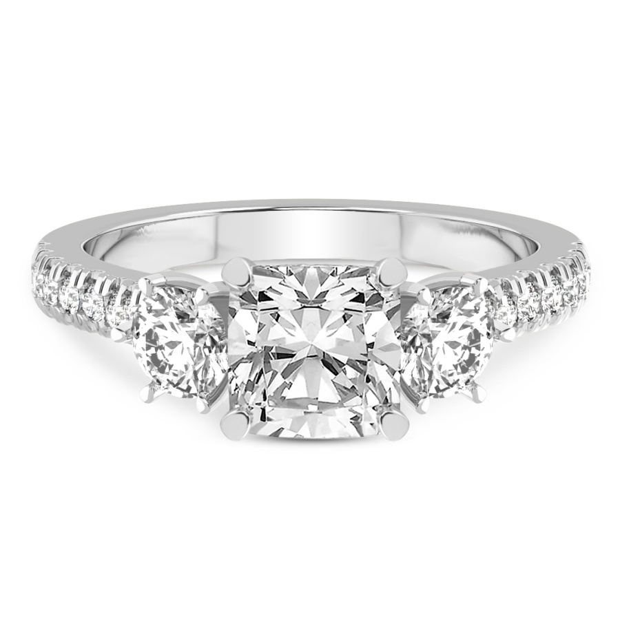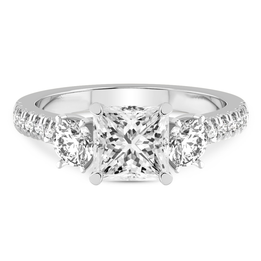 This Hannah Three stone Lab Diamond Ring is a Emerald shape ring Engagement type pt White Gold