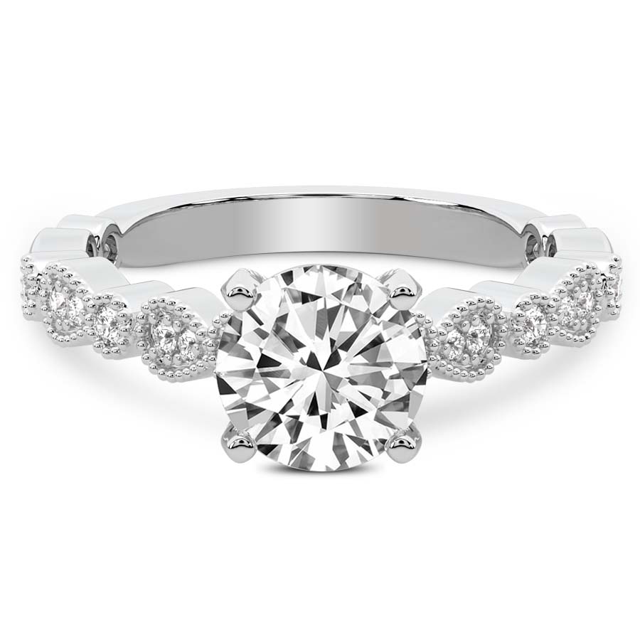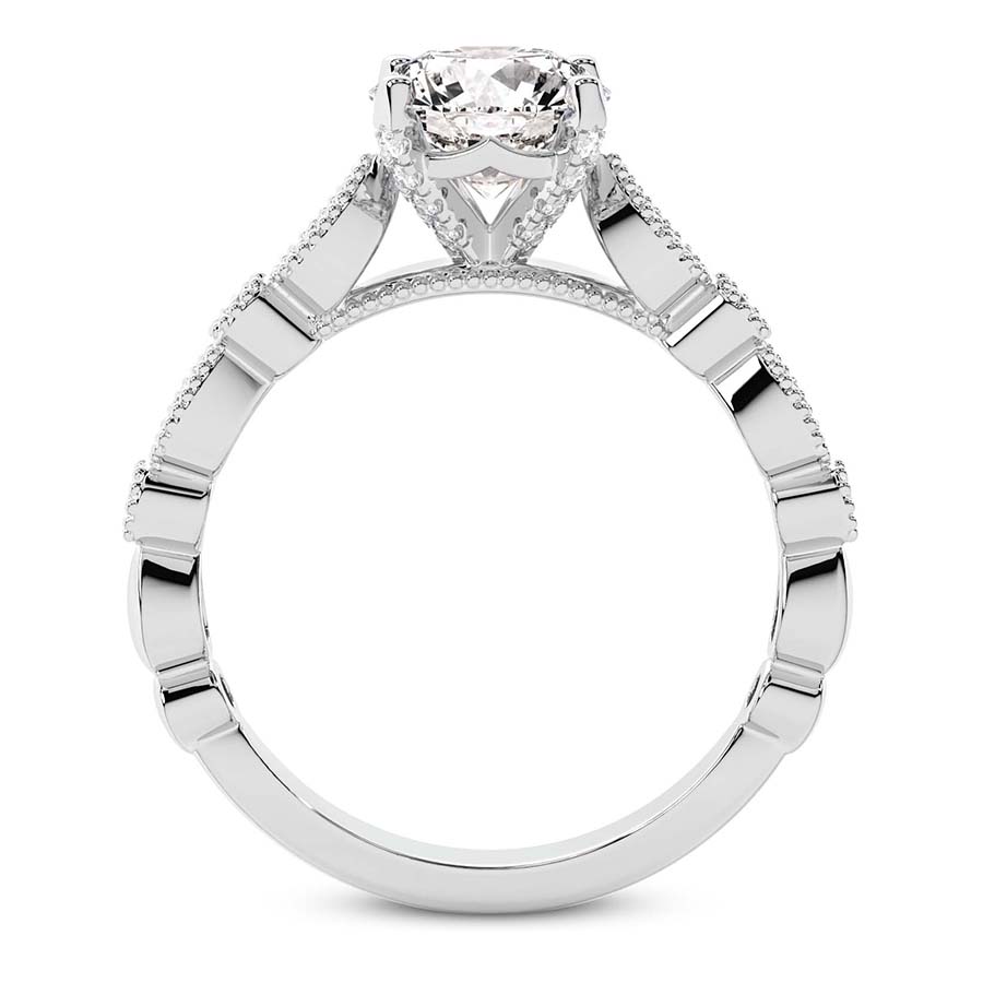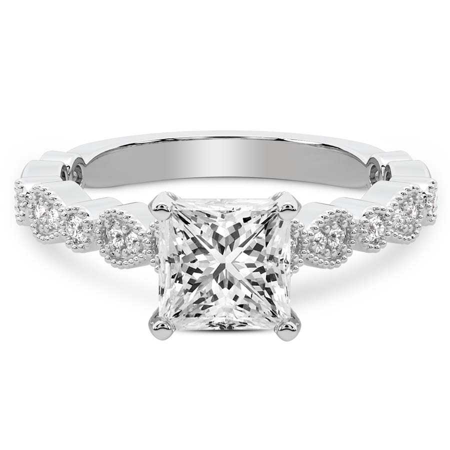 This Renée Milgrain Lab Diamond Ring is a Emerald shape ring Engagement type pt White Gold
