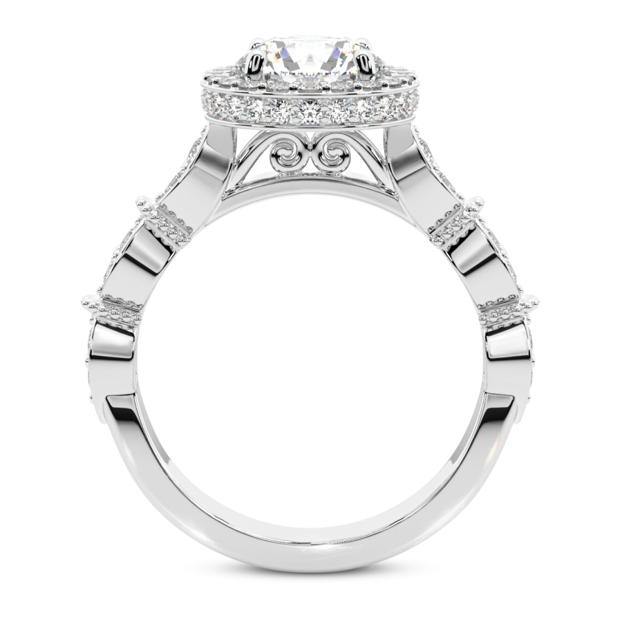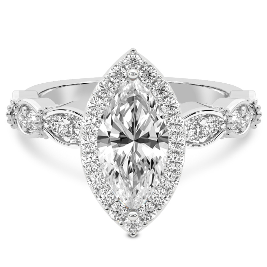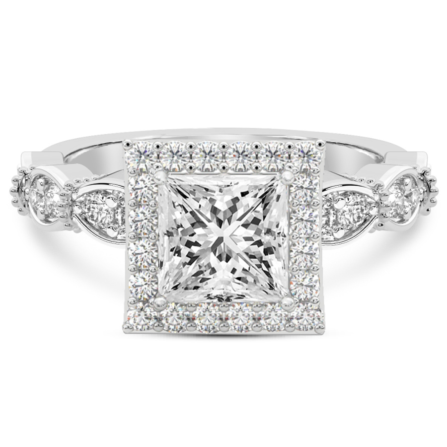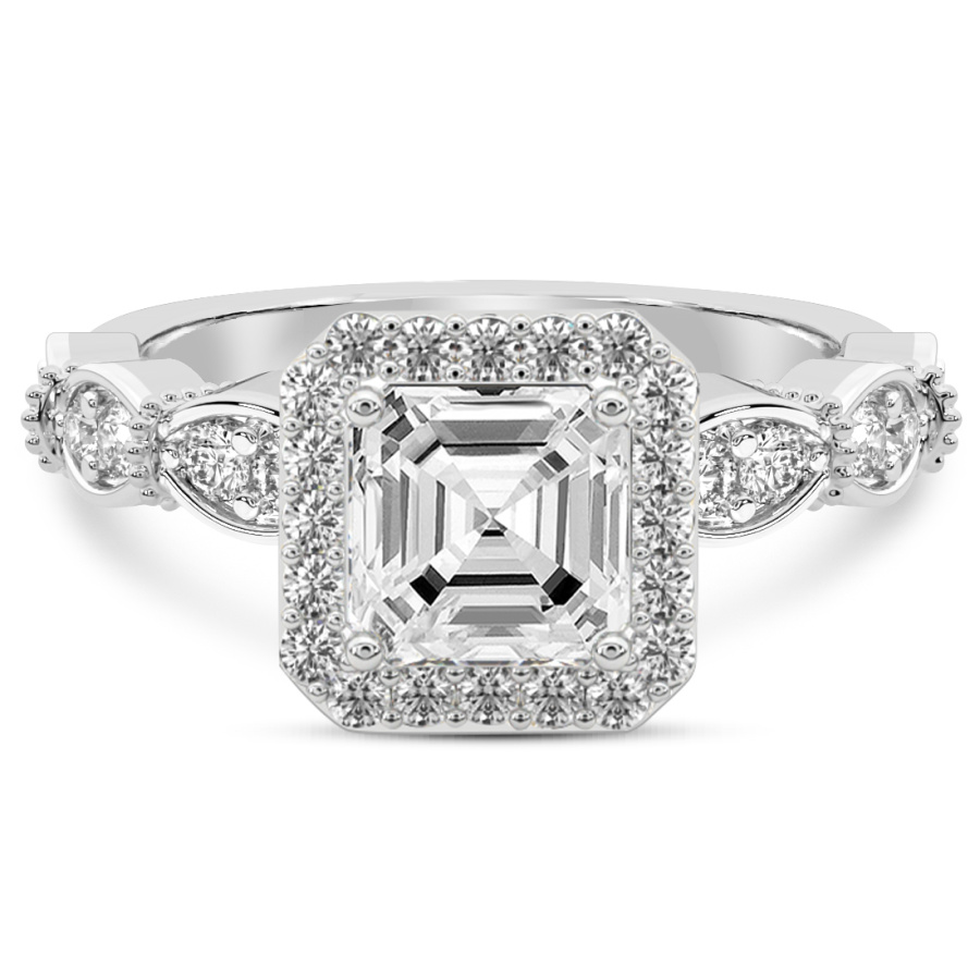 This Savannah Halo Lab Diamond Ring is a Emerald shape ring Engagement type pt White Gold