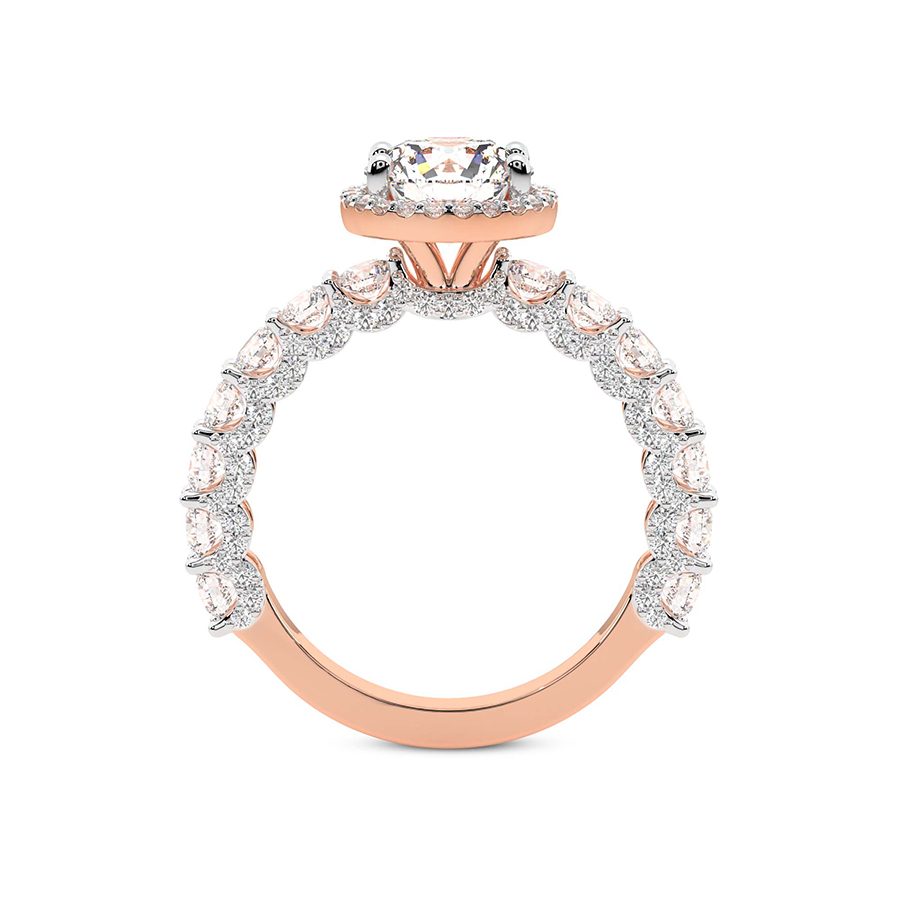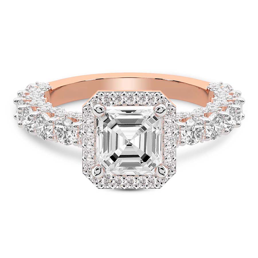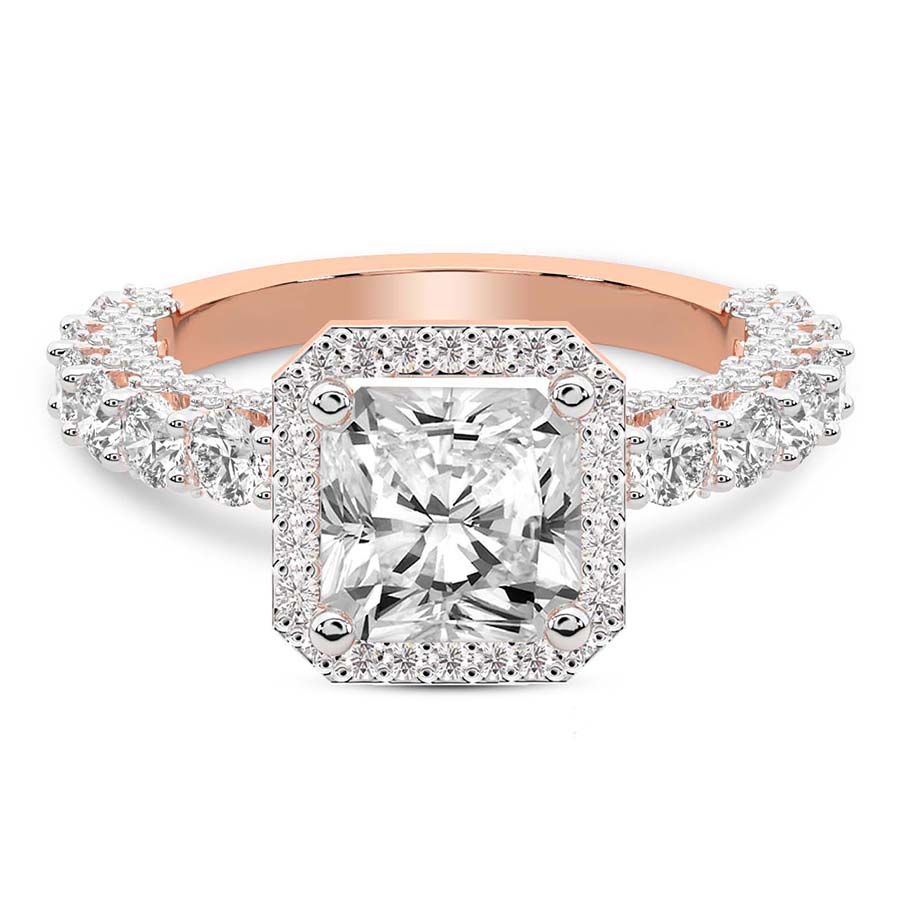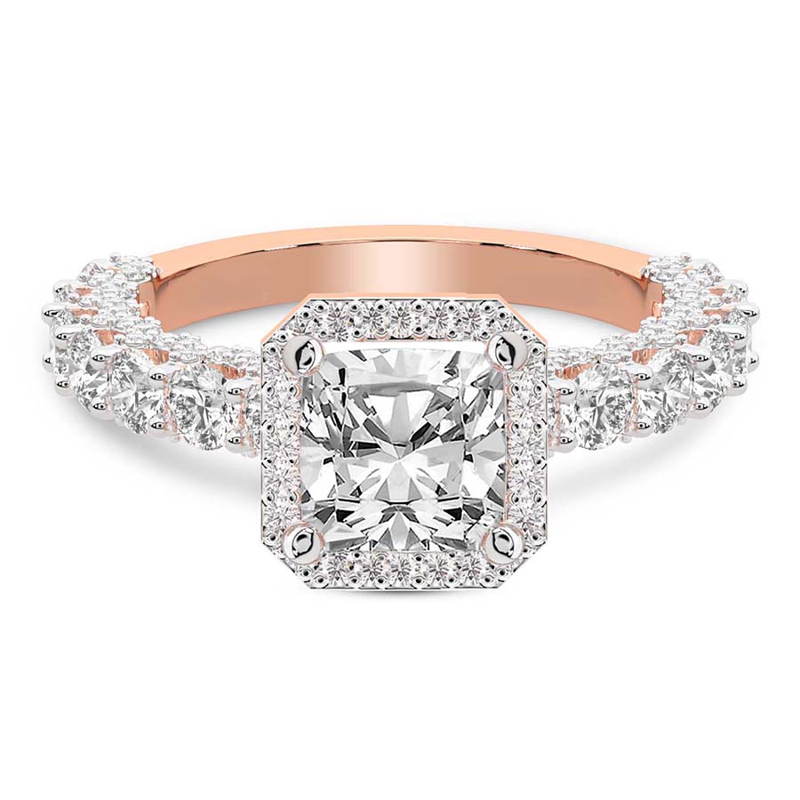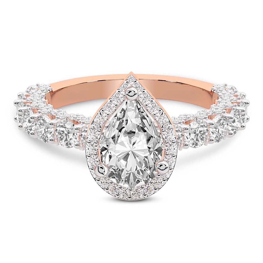 This Zinnia Side Stones Halo Diamond Ring is a Heart shape ring Engagement type 18k Rose Gold