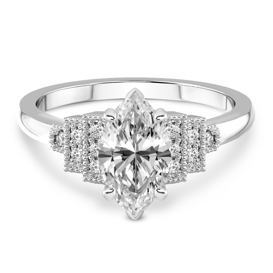 This Isadora Three Stone Side Pear Diamond Ring is a Marquise shape ring Engagement type 18k White Gold