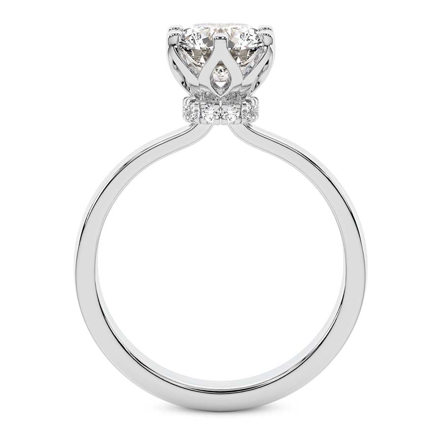 Exude a sense of timeless sophistication with the Marquise Shape Engagement Ring in lustrous platinum, a masterpiece of fine jewelry design. This exquisite piece celebrates the elongated elegance of the marquise cut, a silhouette historically favored for its ability to flatter the hand and maximize brilliance. At the heart of this design lies the Talia petal setting, where delicate metalwork mimics the organic curves of a blooming flower, cradling the central diamond with grace and precision. Wrought from the finest hallmarked platinum, the band offers a substantial yet refined feel, ensuring a lifetime of enduring beauty and strength. What sets this design apart is the enchanting secret halo, a hidden gallery of shimmering accents nestled beneath the primary stone. This subtle detail ensures that the ring captures the light from every possible angle, providing a private glow known only to the wearer. The juxtaposition of the classic marquise shape with modern hidden brilliance creates a captivating narrative of romance and luxury. Perfect for the individual who appreciates artisanal craftsmanship and understated opulence, this Talia petal engagement ring transcends trends. Whether viewed from the top or the side, the intricate detailing reveals a commitment to excellence and a passion for exceptional design. Indulge in a symbol of eternal commitment that blends the botanical inspiration of the Talia collection with the prestige of a secret halo setting, resulting in a platinum engagement ring that is as unique as the love it represents.