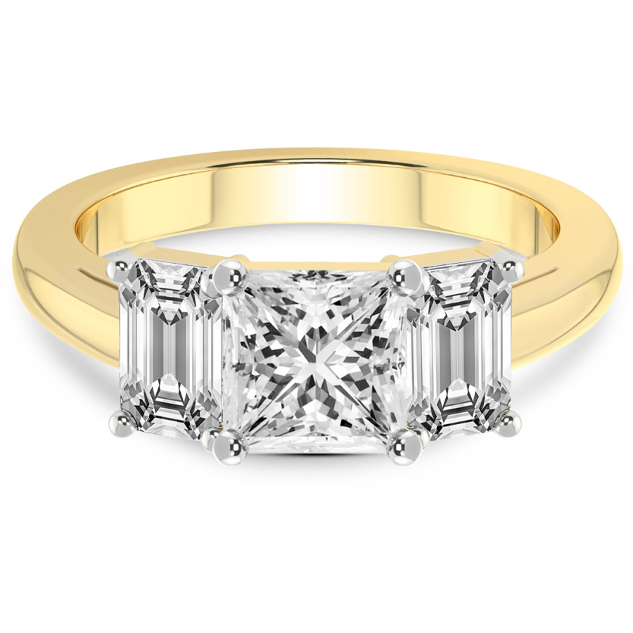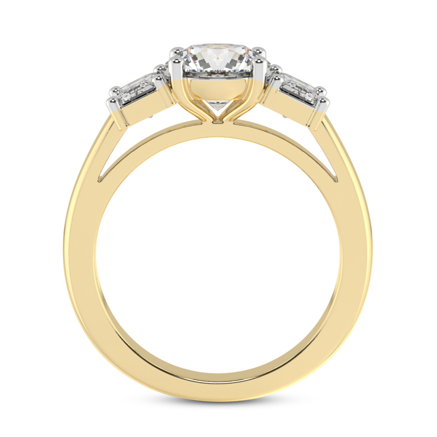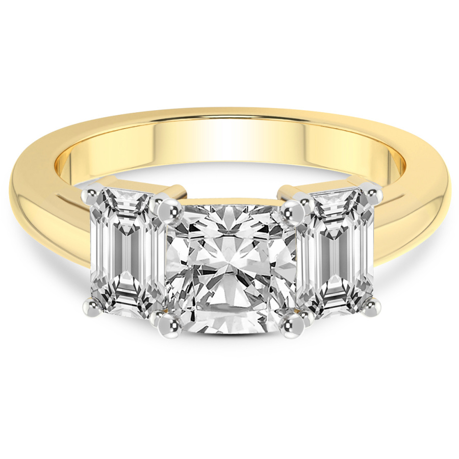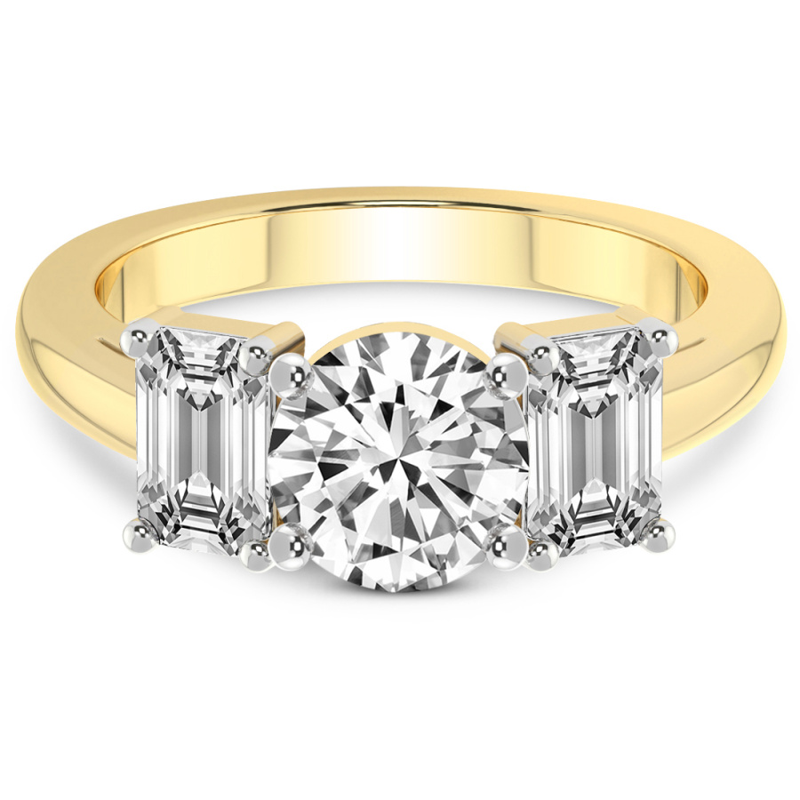 This Aubrey Three stone Side Emerald Lab Diamond Ring is a Oval shape ring Engagement type 18k Yellow Gold