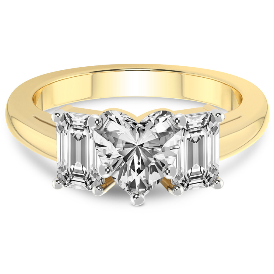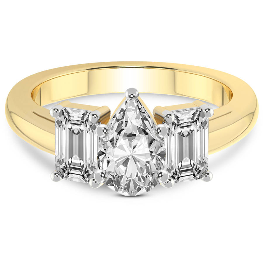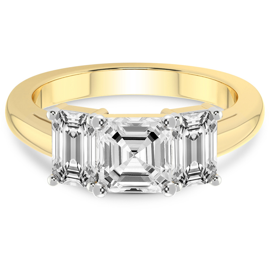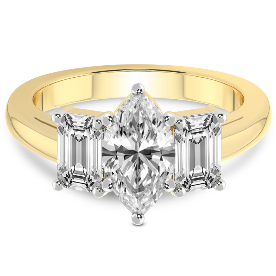 This Aubrey Three stone Side Emerald Lab Diamond Ring is a Oval shape ring Engagement type 18k Yellow Gold
