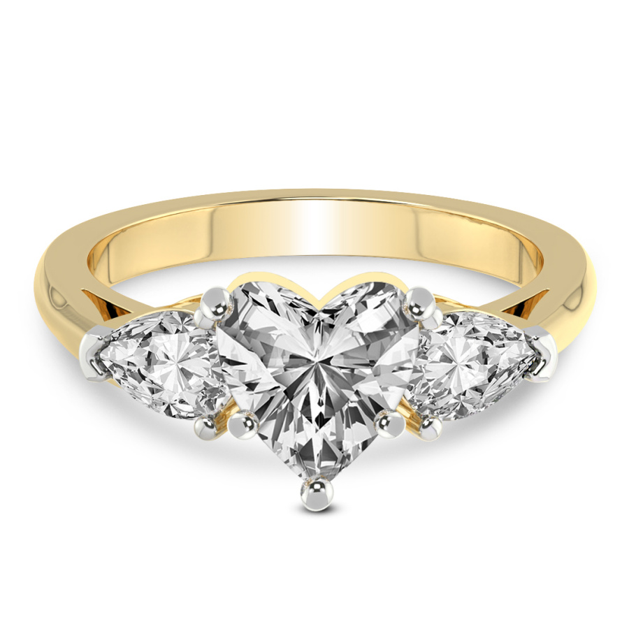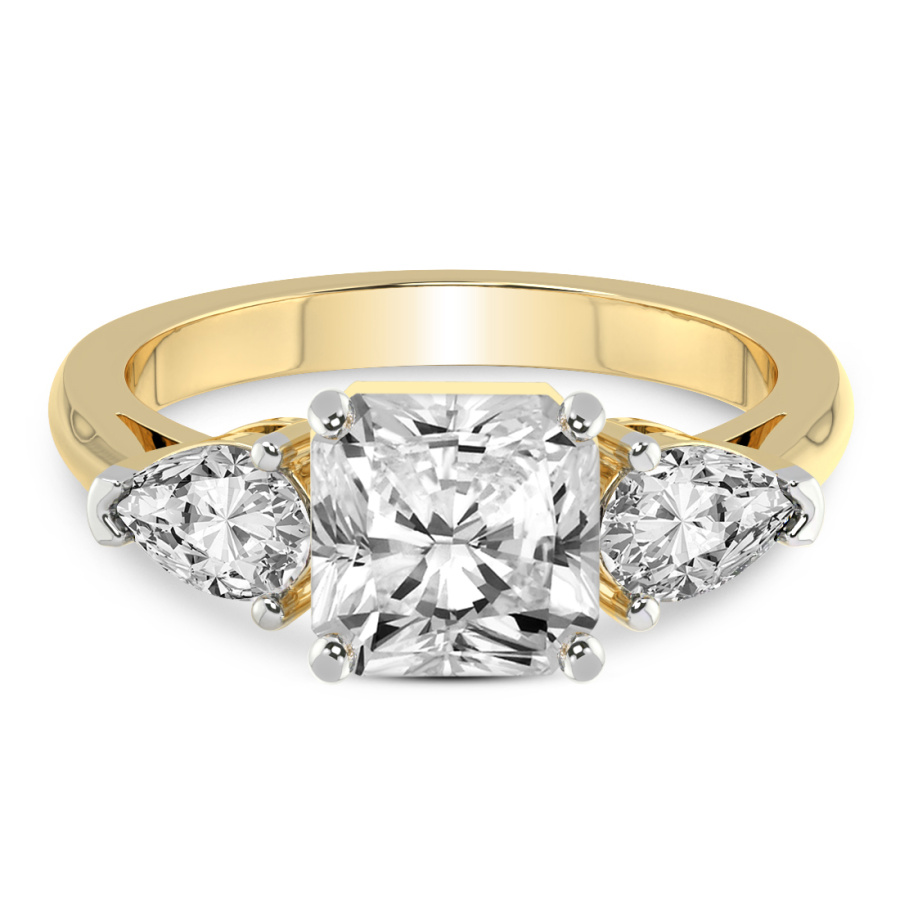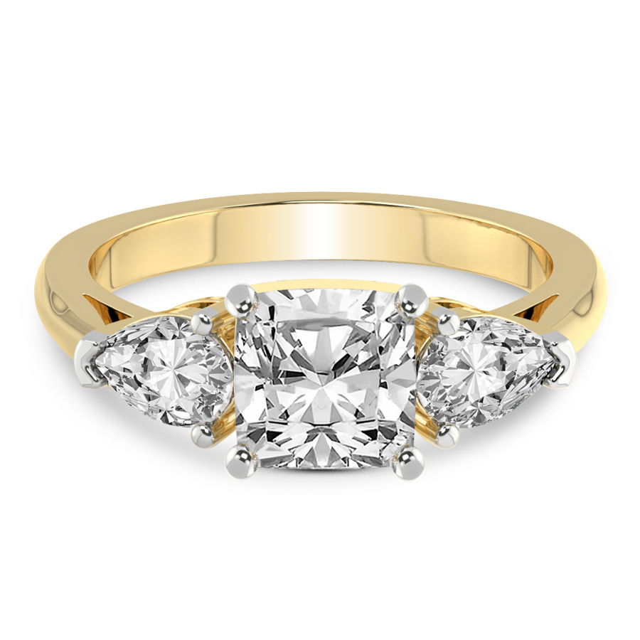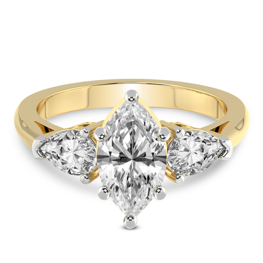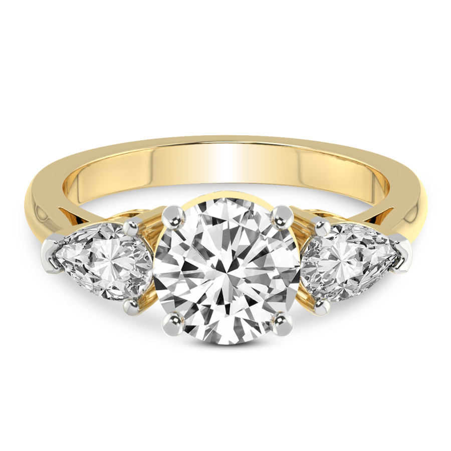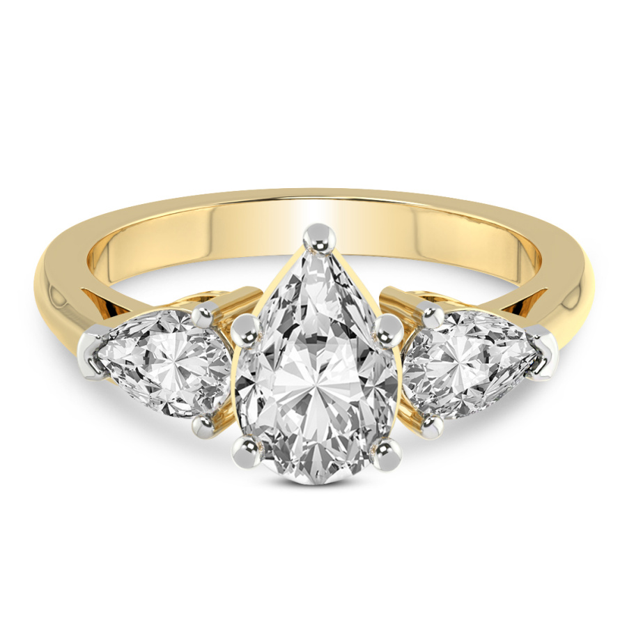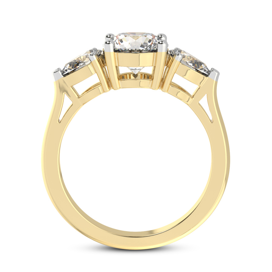 This Isadora Three stone Side Pear Lab Diamond Ring is a Oval shape ring Engagement type 18k Yellow Gold