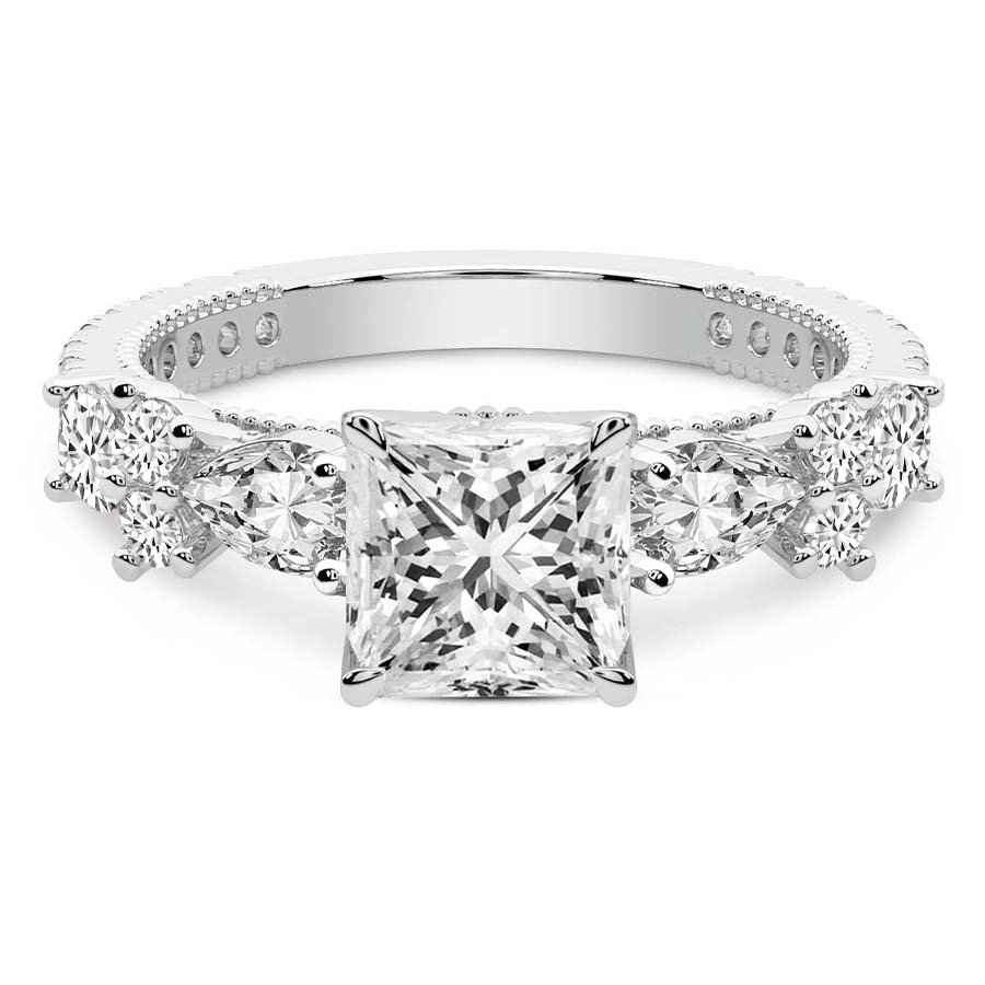 This Chloe Round & Pear Side Stone Lab Diamond Ring is a Oval shape ring Engagement type pt White Gold