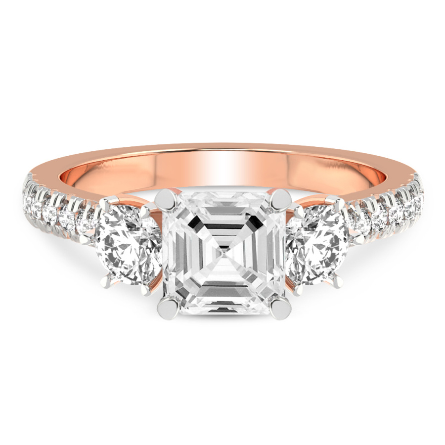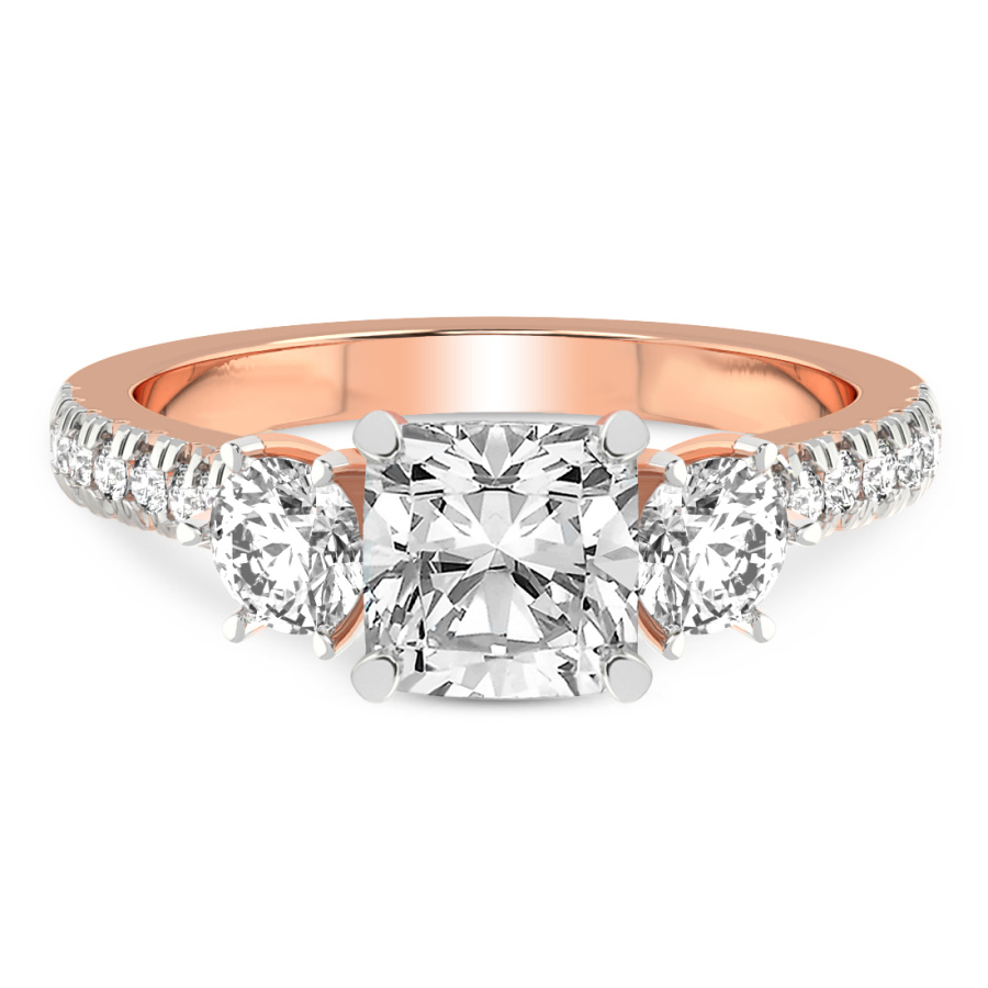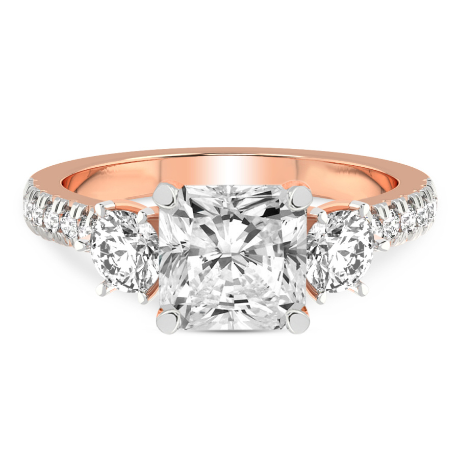 This Hannah Three Stone Diamond Ring is a Princess shape ring Engagement type 18k Rose Gold