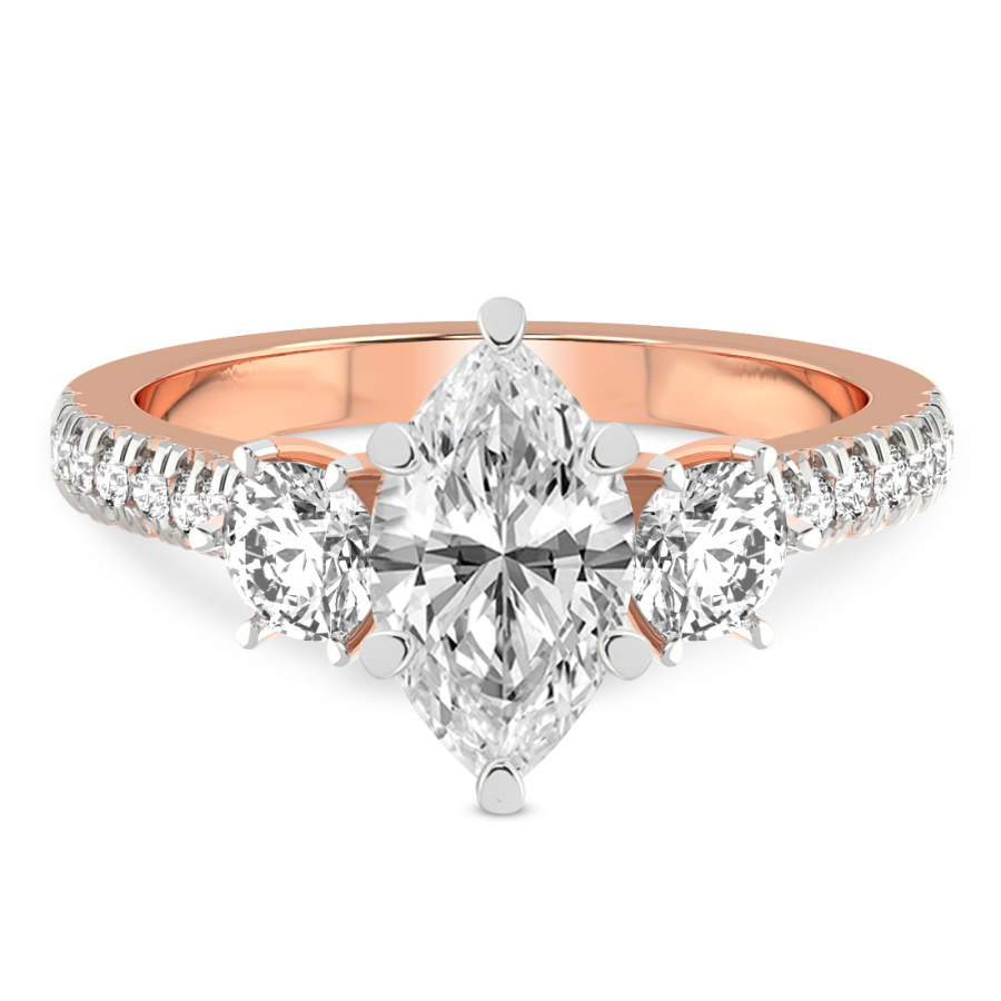 Exuding a timeless allure that transcends fleeting trends, the Hannah Three-Stone Diamond Engagement Ring is a masterpiece of contemporary elegance and romantic sophistication. At its heart lies a magnificent princess-cut diamond, renowned for its sharp, architectural lines and unparalleled brilliance. This central stone is meticulously cradled in a setting of exquisite 18k rose gold, a metal chosen for its warm, blush-toned glow that perfectly complements the fiery radiance of the diamonds. The signature Hannah design elevates the classic trilogy silhouette, featuring two perfectly proportioned side stones that frame the center diamond with graceful symmetry. Symbolizing a couple’s past, present, and future, this three-stone arrangement offers a narrative of enduring love and shared dreams. Every facet of this ring has been expertly polished to ensure a breathtaking play of light, making it a captivating statement piece for the modern bride. The smooth, lustrous 18k rose gold band provides a comfortable yet substantial feel, embodying the bespoke quality and artisanal heritage of De Brilliance. Whether intended as a symbol of a new beginning or a celebration of a lasting bond, this princess-cut masterpiece offers a harmonious blend of vintage charm and high-fashion luxury. It is more than just jewelry; it is a radiant heirloom designed to be cherished for a lifetime, capturing the essence of devotion in every shimmering detail and ensuring your proposal is as unforgettable as the love it represents.