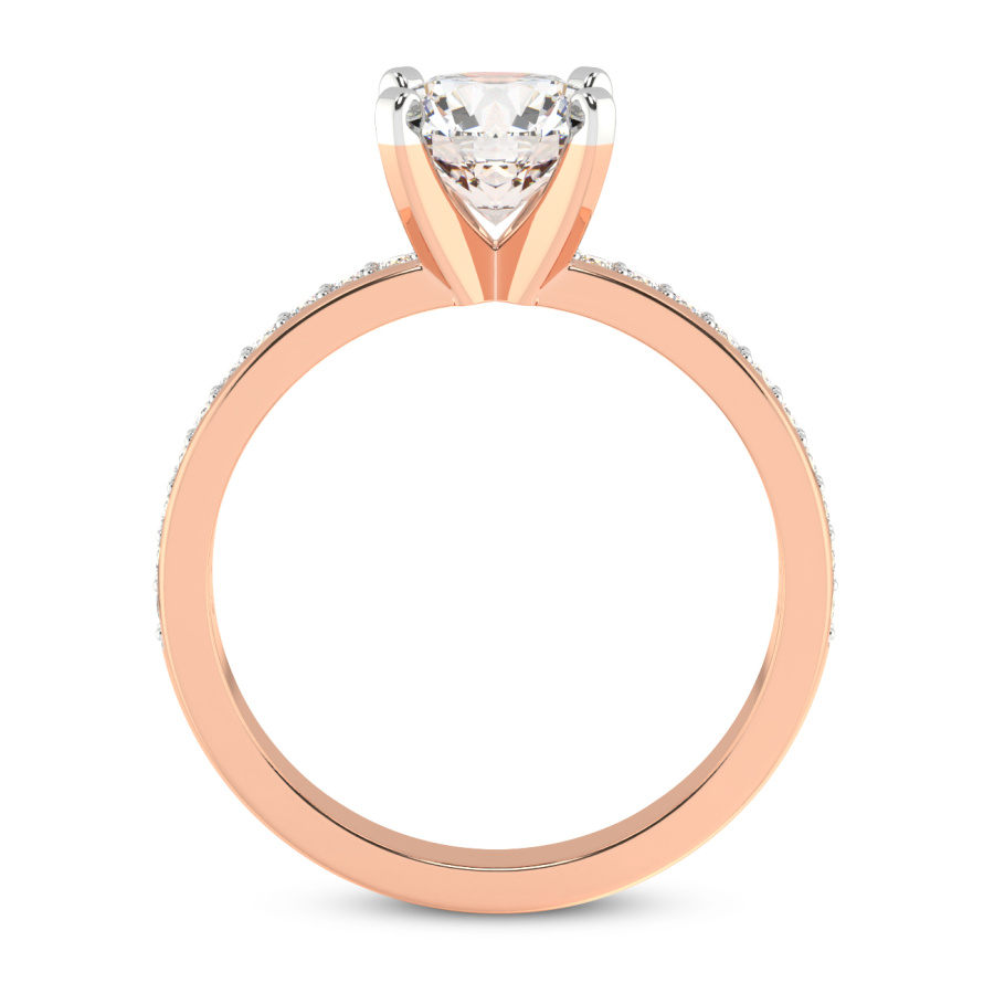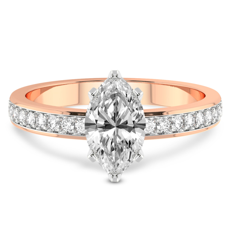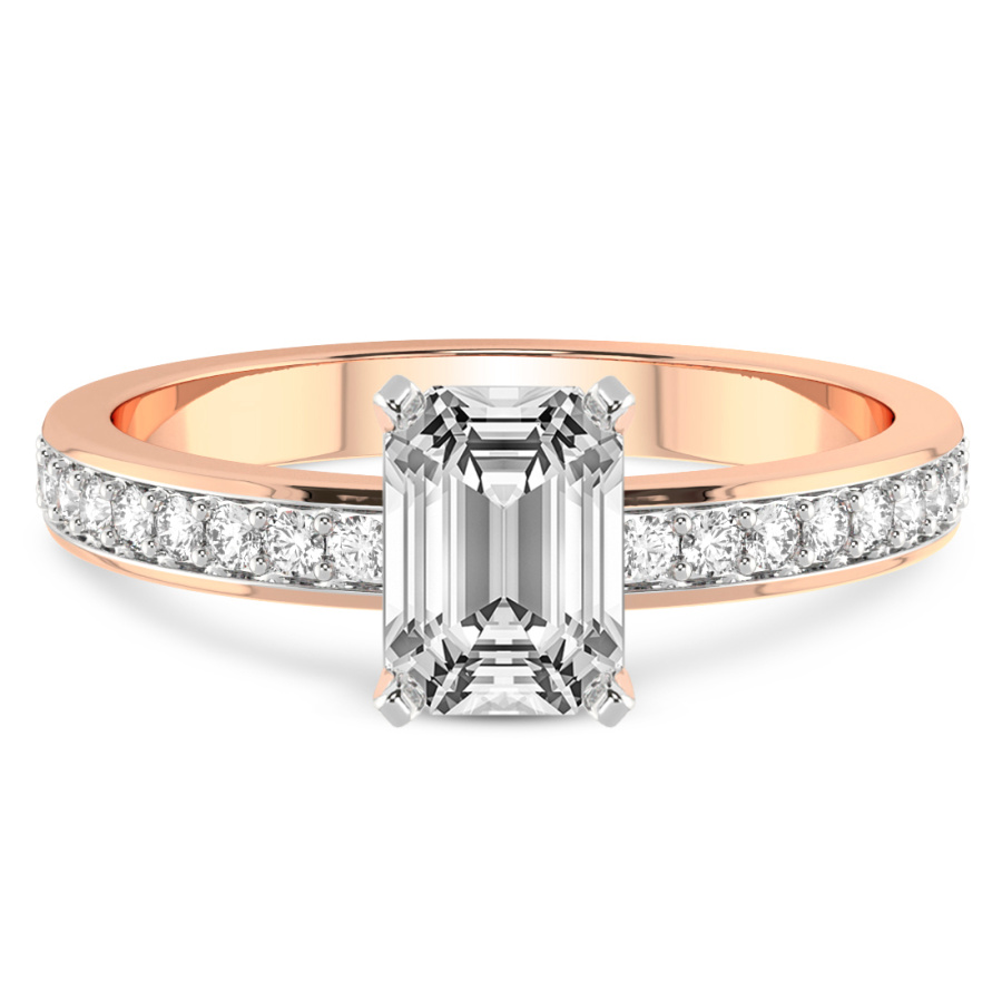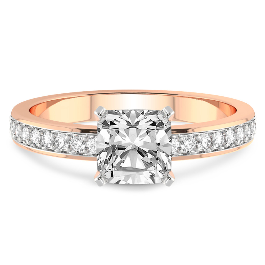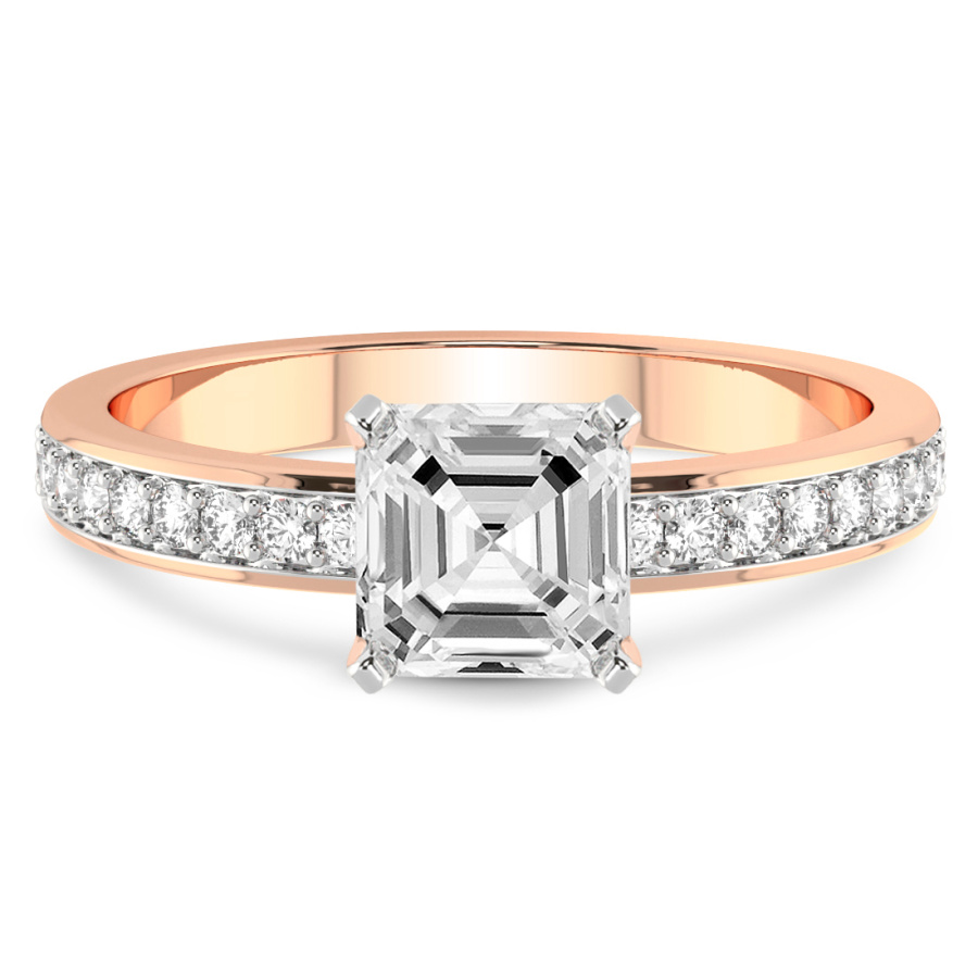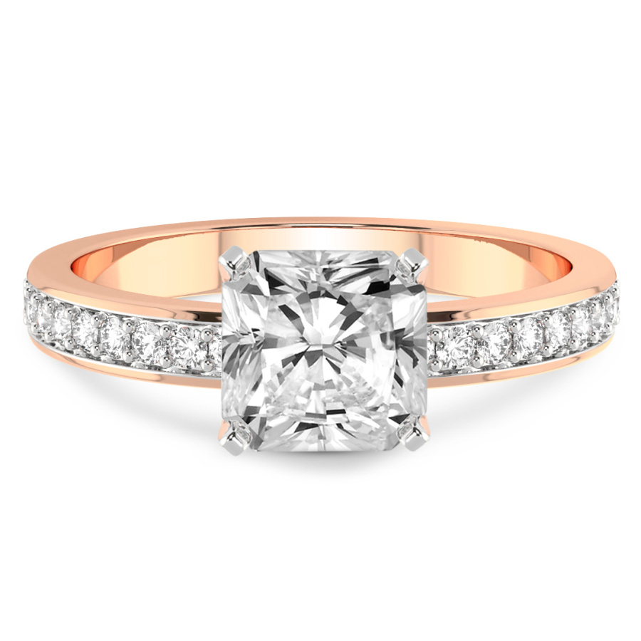 The Hazel of Love Princess Shape Engagement Ring is a masterpiece of modern romance and classical sophistication, designed to capture the heart at first glance. This exquisite piece features a mesmerizing princess-cut center stone, renowned for its sharp lines and exceptional brilliance, set within the warm and lustrous embrace of eighteen-karat rose gold. The delicate blush of the precious metal perfectly complements the fiery radiance of the diamond, creating a visual symphony of light and color. Designed for those who appreciate timeless beauty with a contemporary twist, this ring is further elevated by an eternity-style band. Shimmering accent diamonds are meticulously pavé-set along the shank, ensuring that the ring sparkles from every conceivable angle. This continuous circle of light symbolizes an eternal bond, making it the ultimate expression of devotion. Every facet of the Hazel of Love ring has been masterfully crafted by skilled artisans to ensure unparalleled quality and a luxurious feel on the hand. Whether you are planning a breathtaking proposal or celebrating a significant milestone, this rose gold diamond ring serves as a radiant testament to your unique journey together. Its sophisticated design transitions effortlessly from day to night, making it a versatile addition to any fine jewelry collection. Experience the pinnacle of bridal luxury with this handcrafted treasure, a piece destined to become a cherished heirloom passed down through generations. Embrace the elegance of the Hazel of Love and let your brilliance shine through this incomparable symbol of forever.