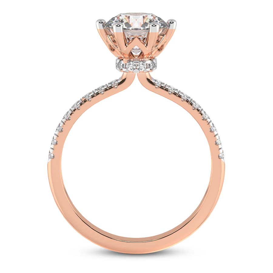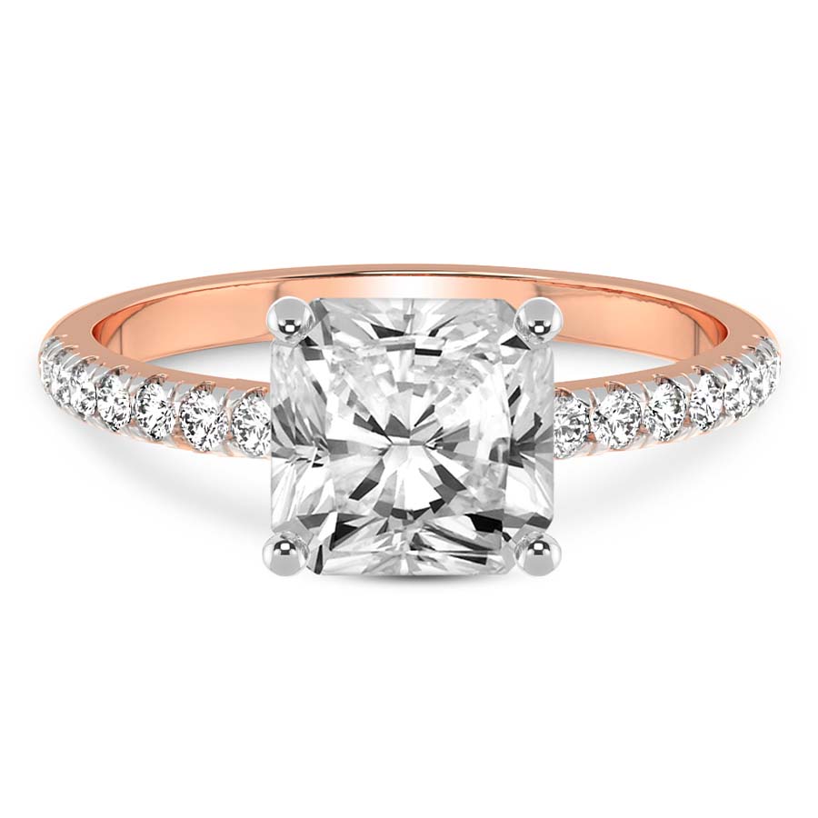 The Ivy Secret Halo Diamond Ring is a masterpiece of contemporary romance, designed for those who seek a perfect harmony between modern geometry and timeless sophistication. At the heart of this exquisite 18k rose gold engagement ring lies a breathtaking princess cut diamond, celebrated for its sharp lines and exceptional fire. This central gemstone is elevated by an ingenious secret halo, a hidden gallery of pavé diamonds tucked beneath the setting that catches the light from every angle, offering a subtle yet radiant glow known only to the wearer and those closest to her. Meticulously crafted with a focus on delicate proportions, the warm blush of the 18k rose gold band provides a romantic contrast to the icy brilliance of the diamonds. The Ivy design embodies a sense of organic grace, seamlessly blending artisanal expertise with high-fashion allure. Whether as a symbol of eternal commitment or a celebration of a personal milestone, this princess shape engagement ring transcends fleeting trends to become a cherished heirloom. Every facet of the Ivy Secret Halo ring reflects the pinnacle of luxury jewelry design, ensuring that your proposal is as unique and unforgettable as the love it represents. Chosen for its superior clarity and masterful craftsmanship, this ring stands as a testament to enduring beauty and refined taste, making it the ultimate choice for a lifetime of brilliance and shared memories.
