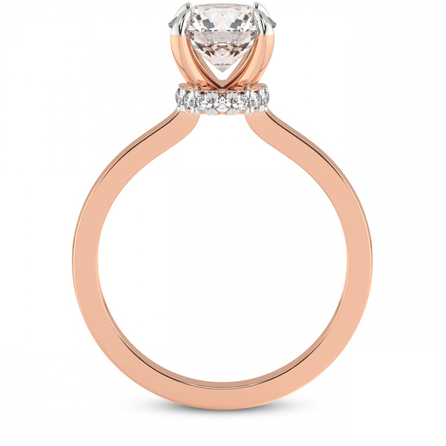 The Kylie Secret Halo Princess Shape Engagement Ring is a masterpiece of modern romance, meticulously crafted in radiant 18k rose gold to offer a warmth that complements every skin tone. At the heart of this exquisite design sits a breathtaking princess-cut diamond, renowned for its sharp lines and exceptional brilliance. This central stone is secured by four elegant prongs, elevated by sophisticated cathedral shoulders that lend a regal silhouette to the profile. What truly distinguishes the Kylie ring is its enchanting secret halo—a delicate ribbon of pavé diamonds nestled beneath the center stone, visible only to those who admire its intricate details from the side. This hidden shimmer adds an extra layer of brilliance, ensuring the ring sparkles from every conceivable angle. The blush hues of the 18k rose gold provide a contemporary yet timeless backdrop for the icy fire of the diamonds, creating a harmonious balance of color and light. Perfectly suited for the modern bride who appreciates understated luxury with a unique twist, this princess cut engagement ring represents the pinnacle of artisanal jewelry design. Every curve and facet has been polished to perfection, reflecting a commitment to quality and eternal love. Whether you are celebrating a proposal or a significant milestone, the Kylie secret halo ring serves as a stunning testament to a shared future, offering a blend of classic sophistication and modern flair that will be cherished for generations to come.