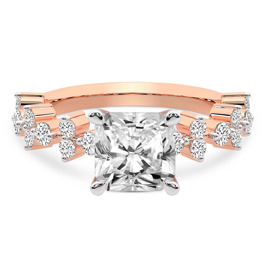 This Sadie Side Stone Ring is a Princess shape ring Engagement type 18k Rose Gold