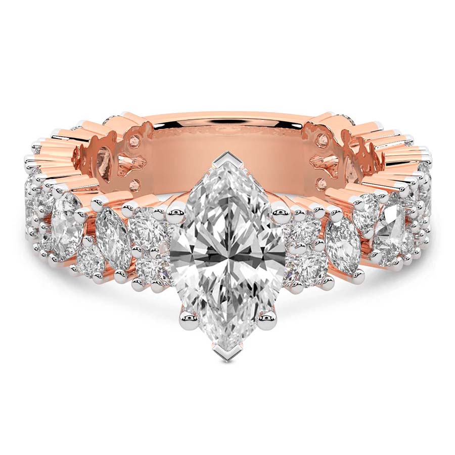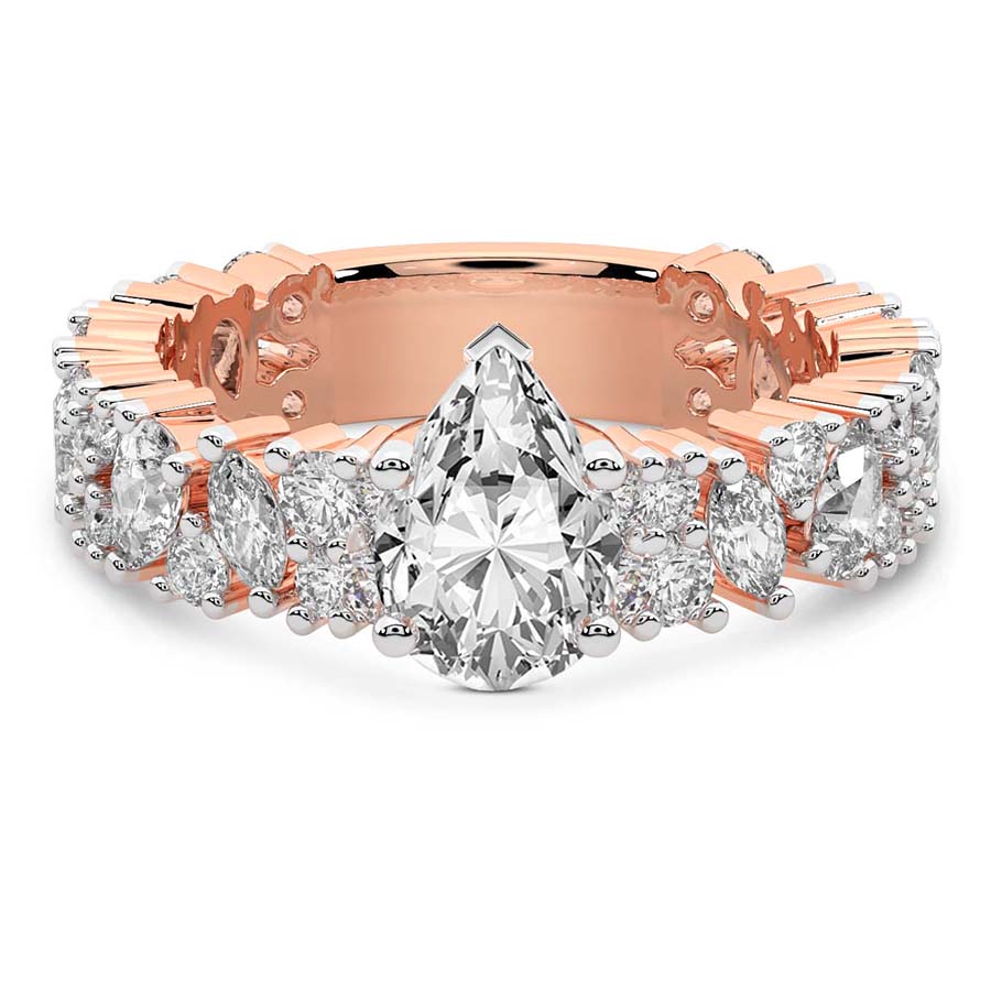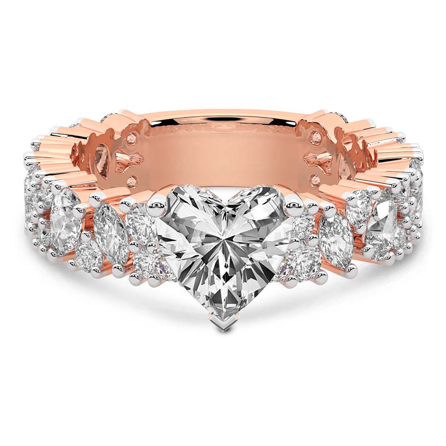 This Zoé Side Stone Encrusted Ring is a Princess shape ring Engagement type 18k Rose Gold