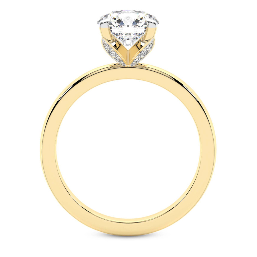This Daisy Leaf Petal Solitaire Diamond Ring is a Princess shape ring Engagement type 18k Yellow Gold