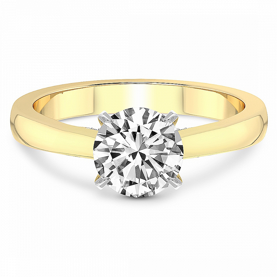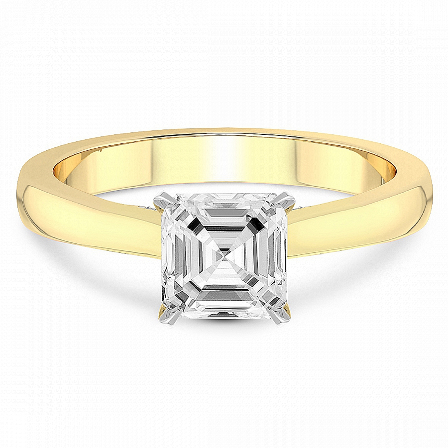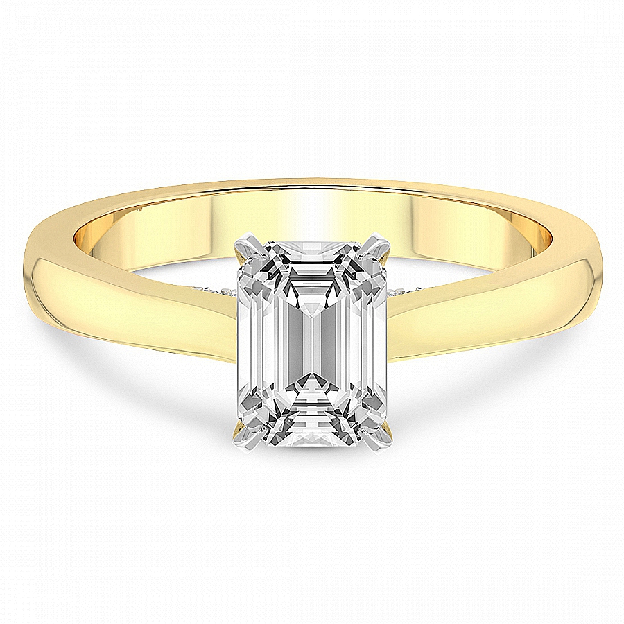 This Denise Hidden Accents Solitaire Ring is a Princess shape ring Engagement type 18k Yellow Gold