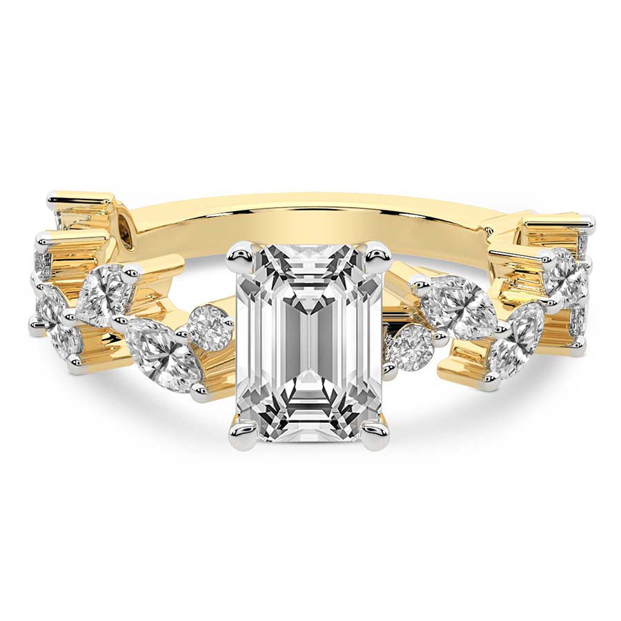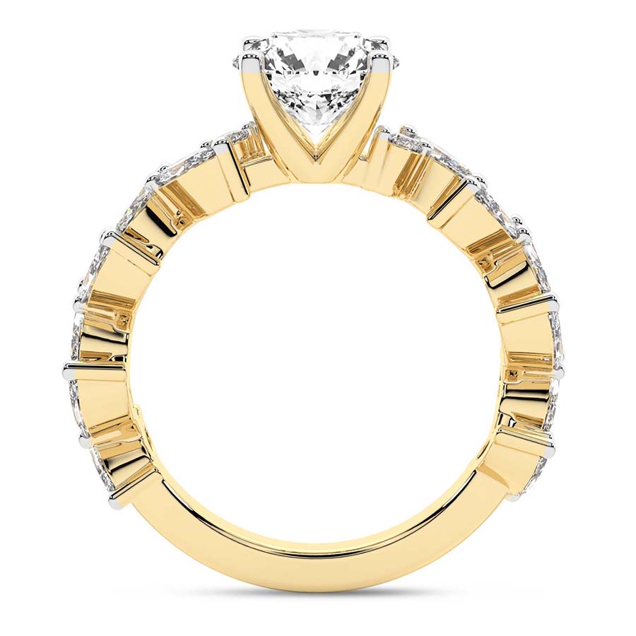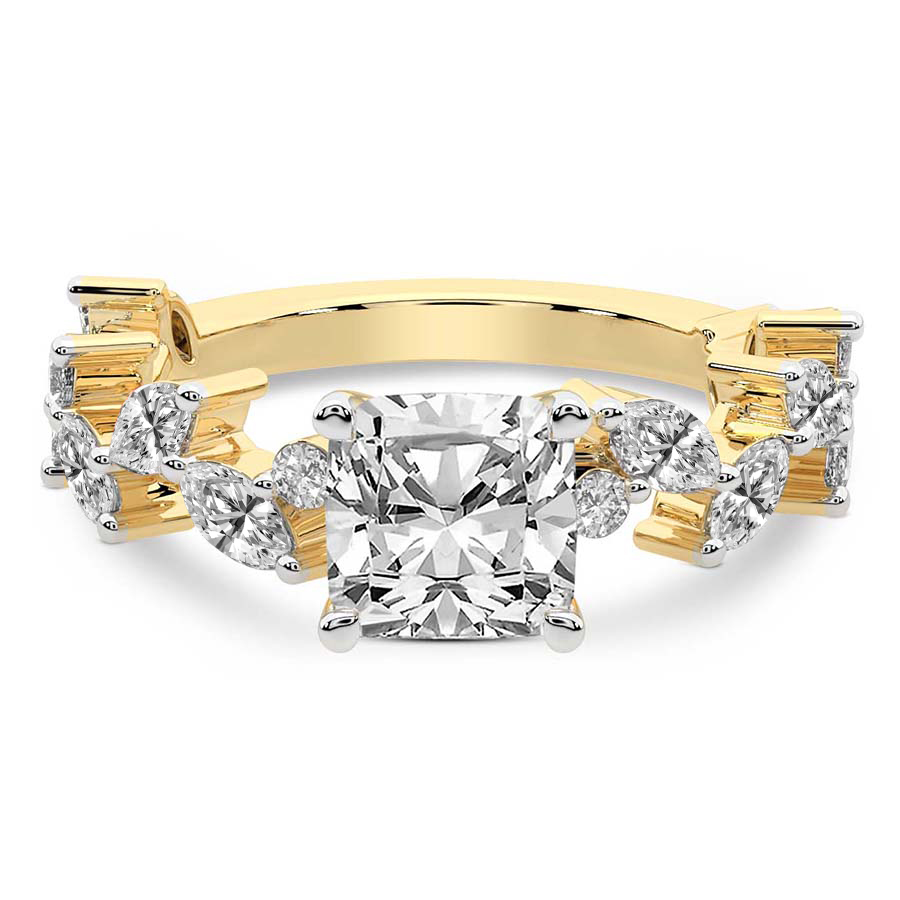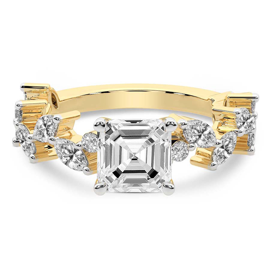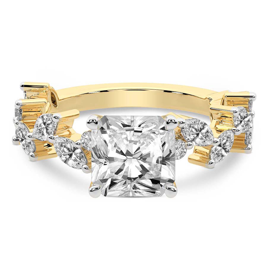 This Kerensa Side Stone Ring is a Princess shape ring Engagement type 18k Yellow Gold