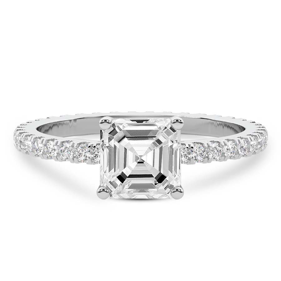 This Amelia Micro pavé Eternity Lab Diamond Ring is a Asscher shape ring Engagement type 18k White Gold