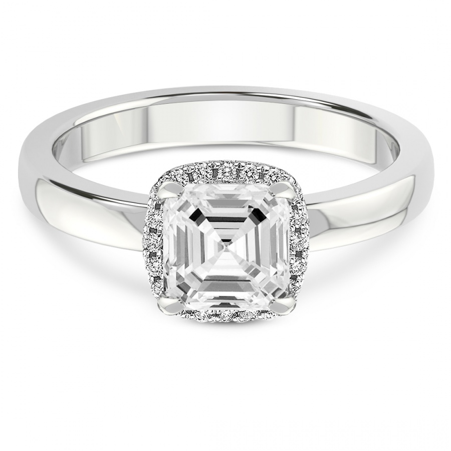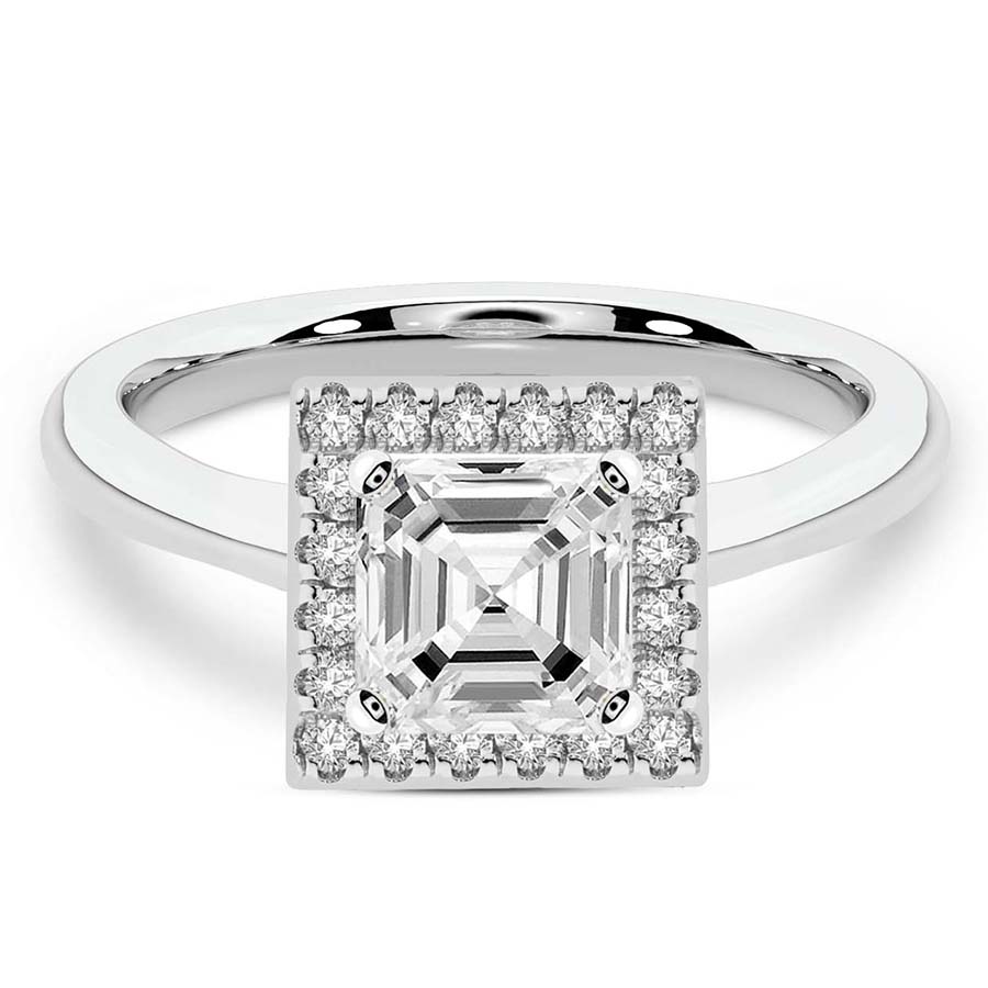 This Abigail Halo Lab Diamond Ring is a Asscher shape ring Engagement type pt White Gold