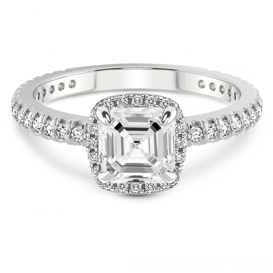 This Evelyn Halo Lab Diamond Eternity Ring is a Asscher shape ring Engagement type 18k White Gold