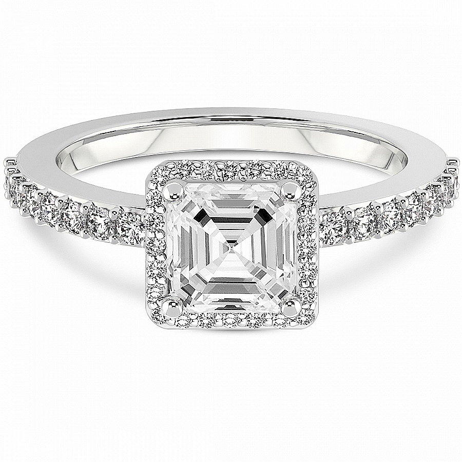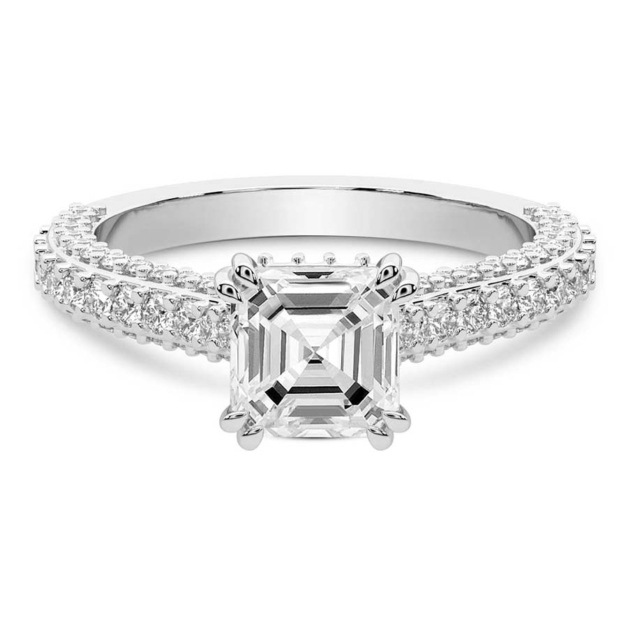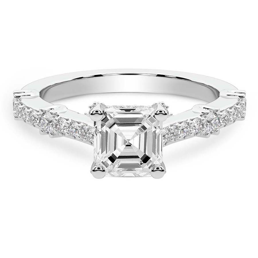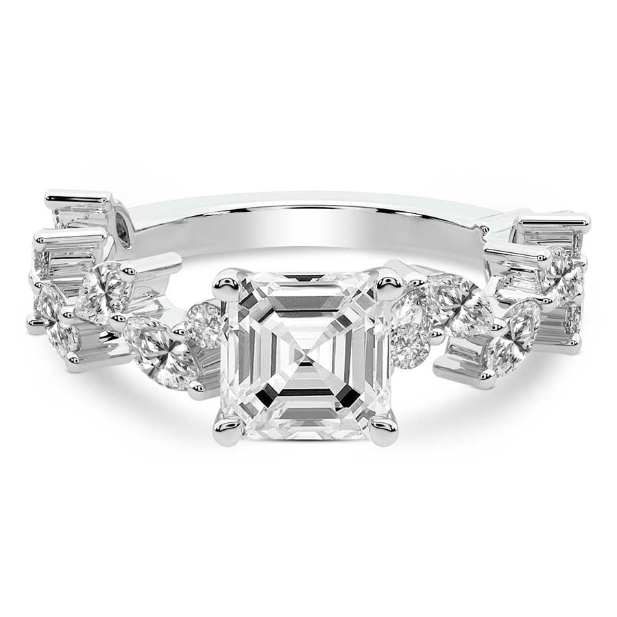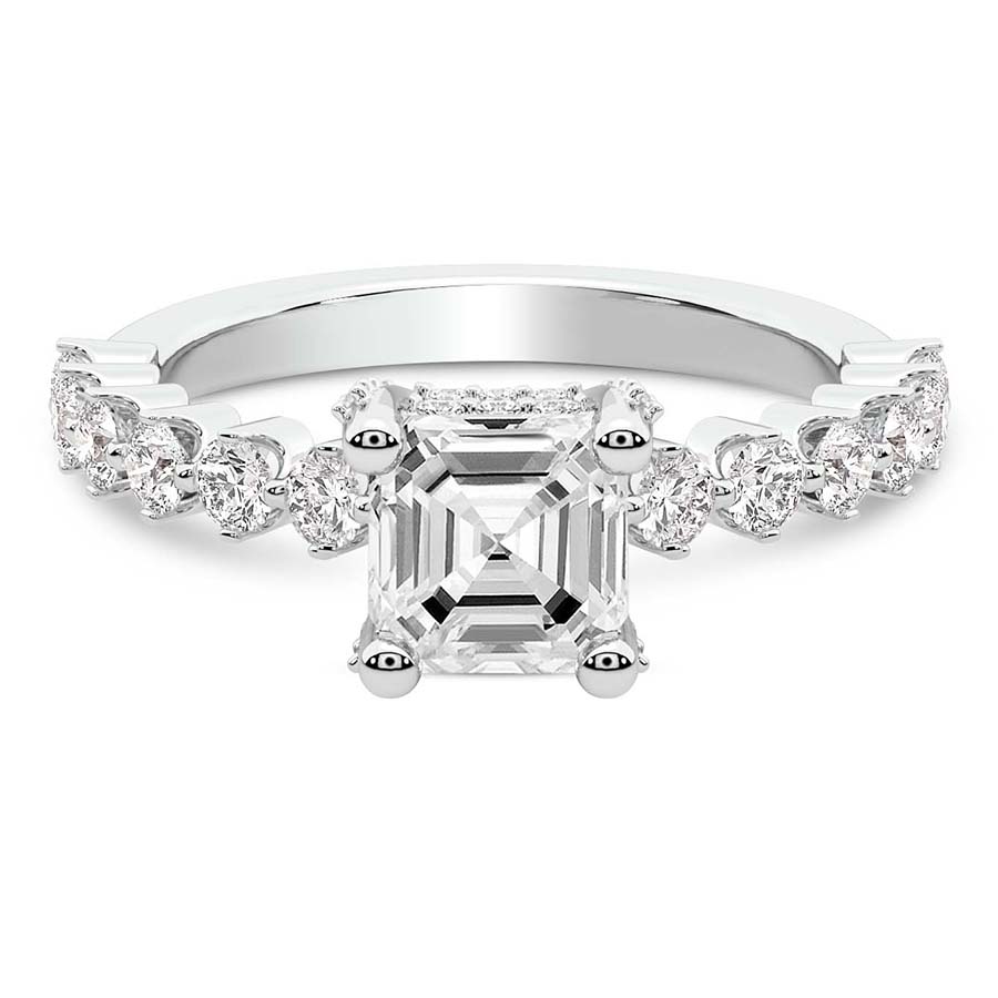 This Ella Floating Side Stones Lab Diamond Ring is a Asscher shape ring Engagement type 18k White Gold