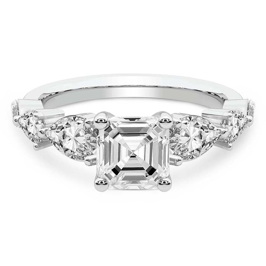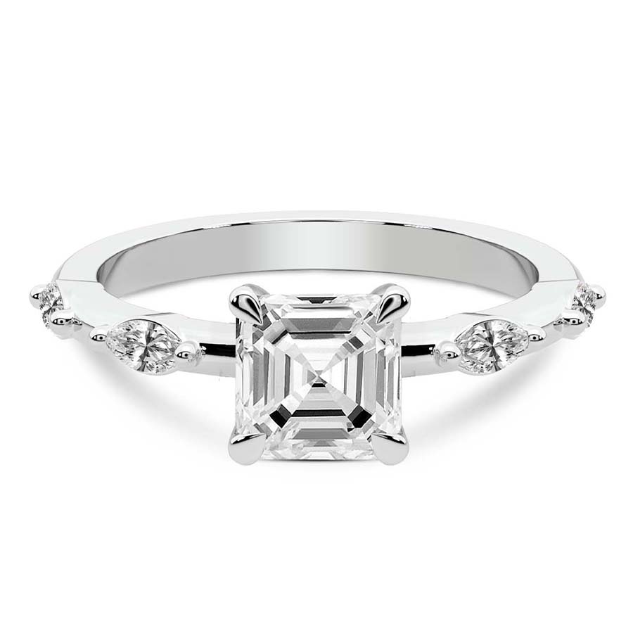 This Amelia Side Stone Lab Diamond Ring is a Asscher shape ring Engagement type 18k White Gold