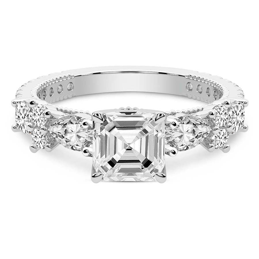 This Kerensa Side Stone Lab Diamond Ring is a Asscher shape ring Engagement type pt White Gold