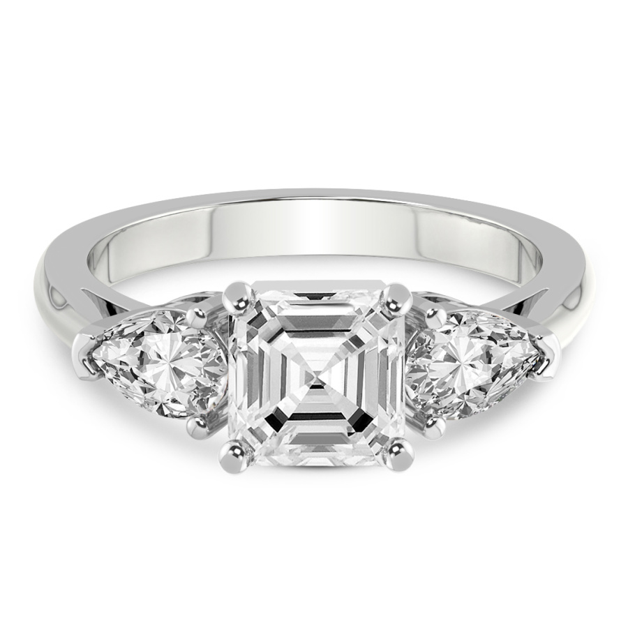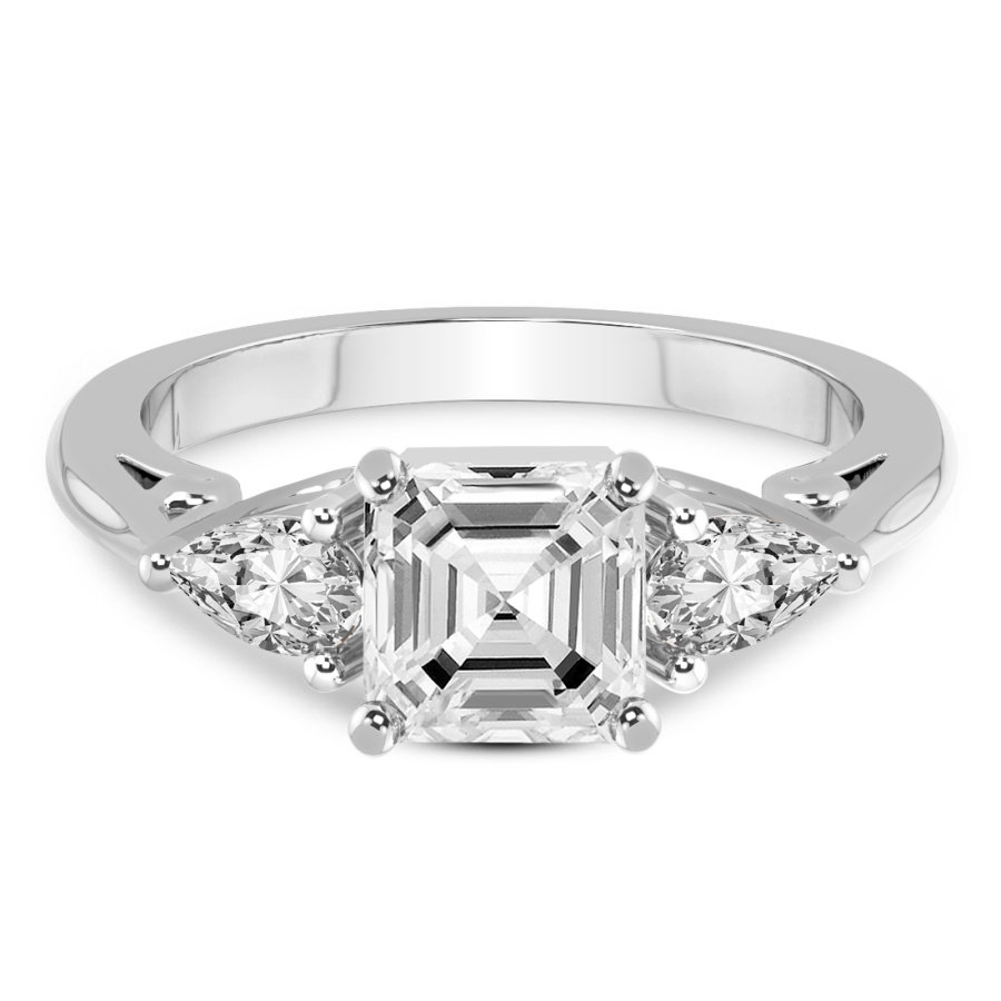 This Isadora Three stone Side Pear Lab Diamond Ring is a Asscher shape ring Engagement type 18k White Gold