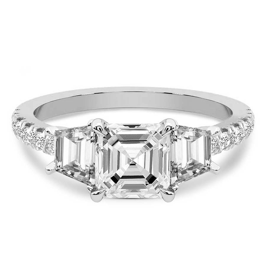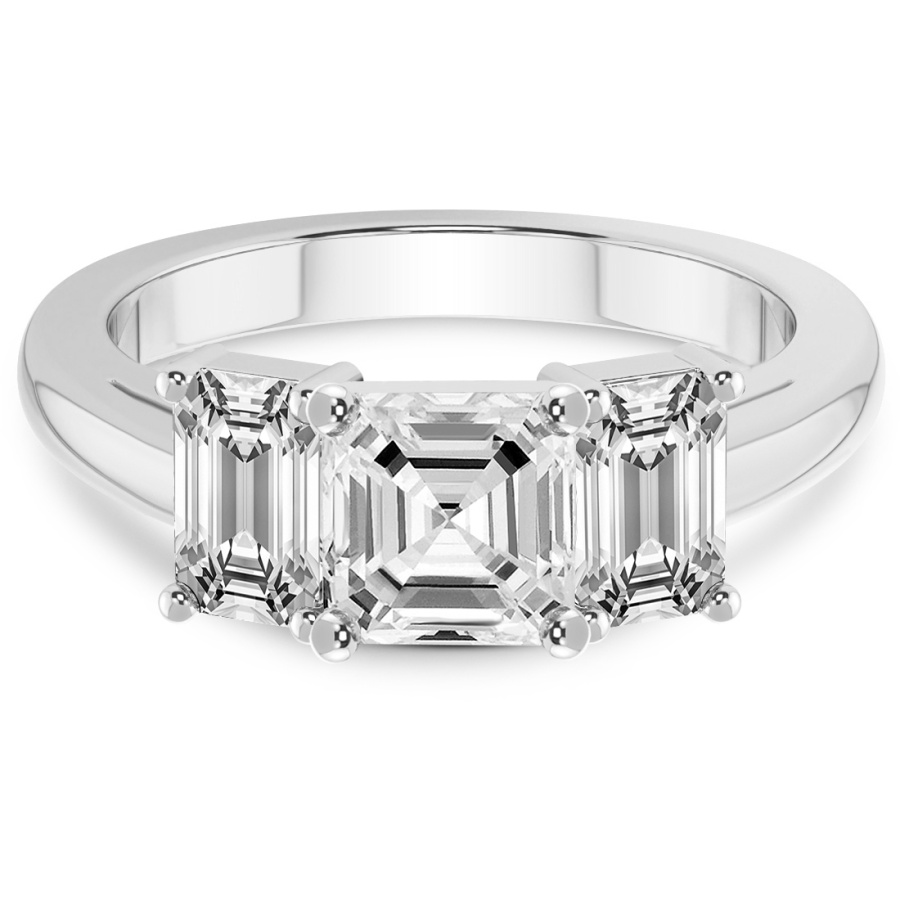 This Hannah Three stone Lab Diamond Ring is a Asscher shape ring Engagement type pt White Gold