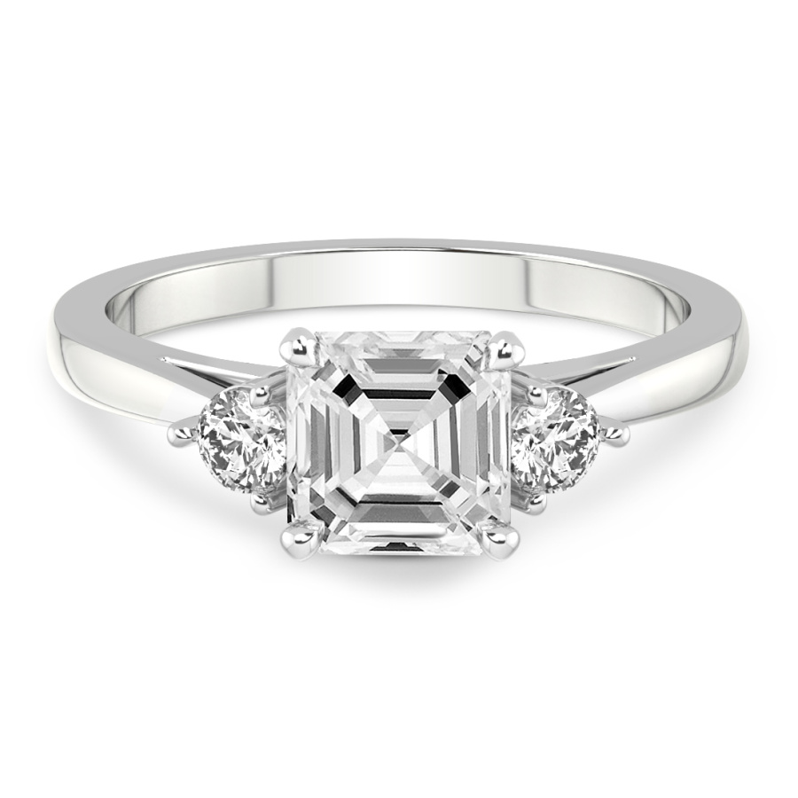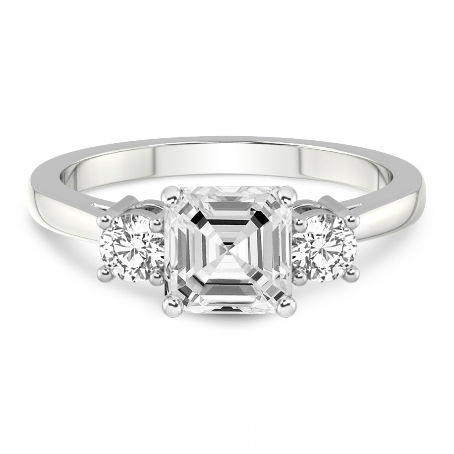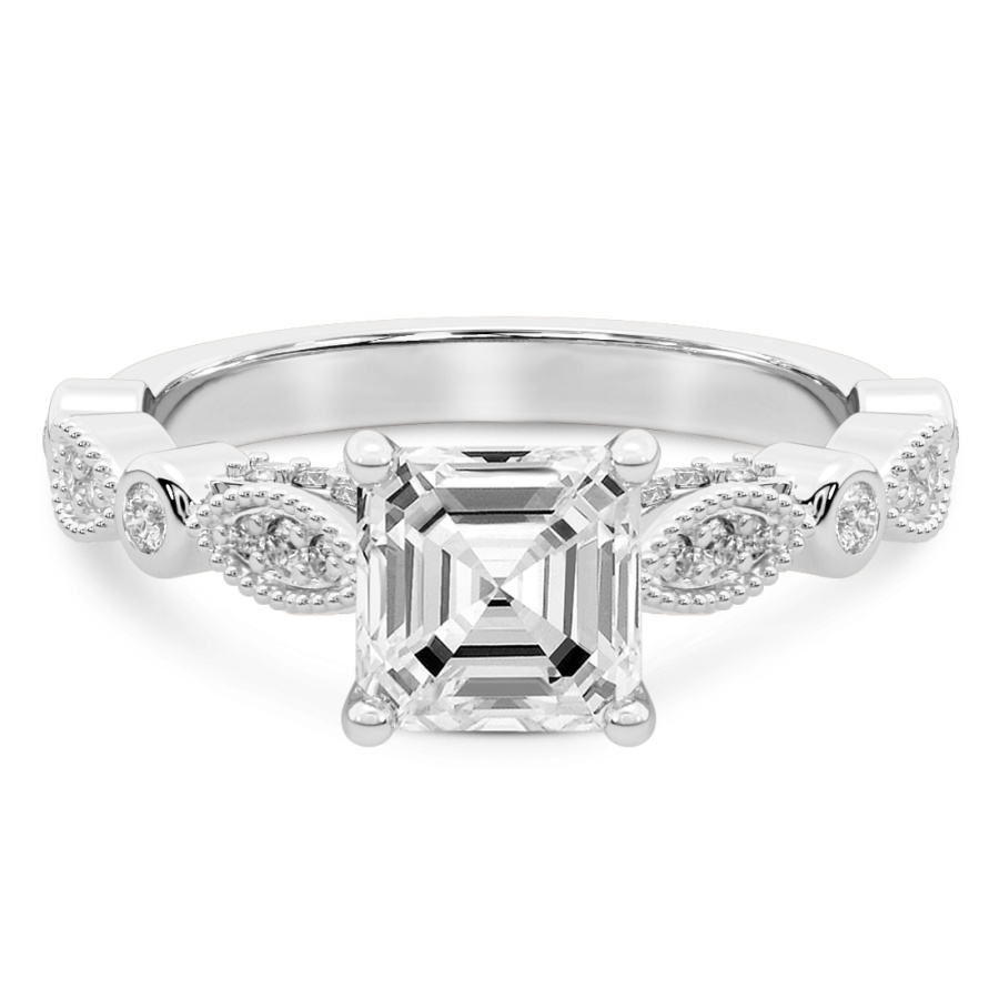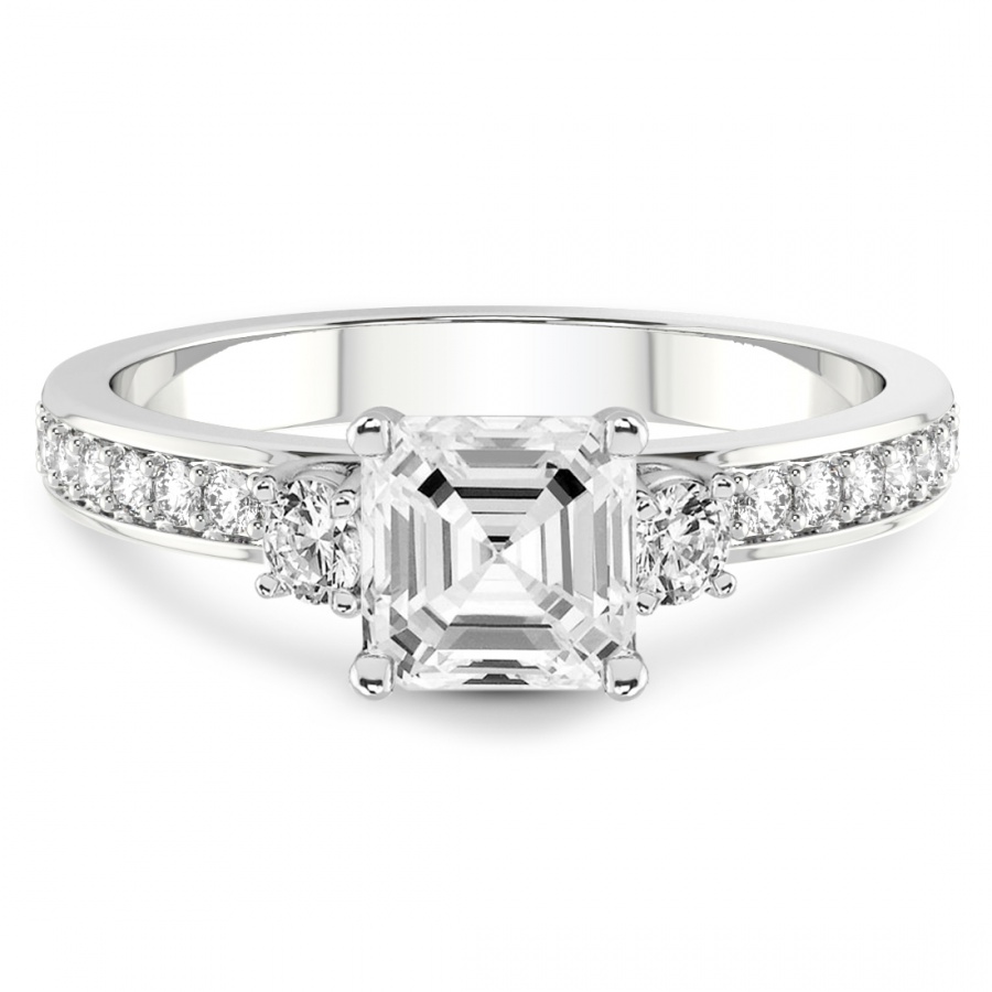 This Addison Side Stone Lab Diamond Ring is a Asscher shape ring Engagement type 18k White Gold