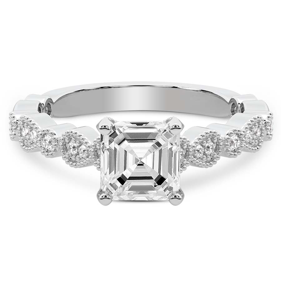This Anya Texture Solitaire Lab Diamond Ring is a Asscher shape ring Engagement type 18k White Gold