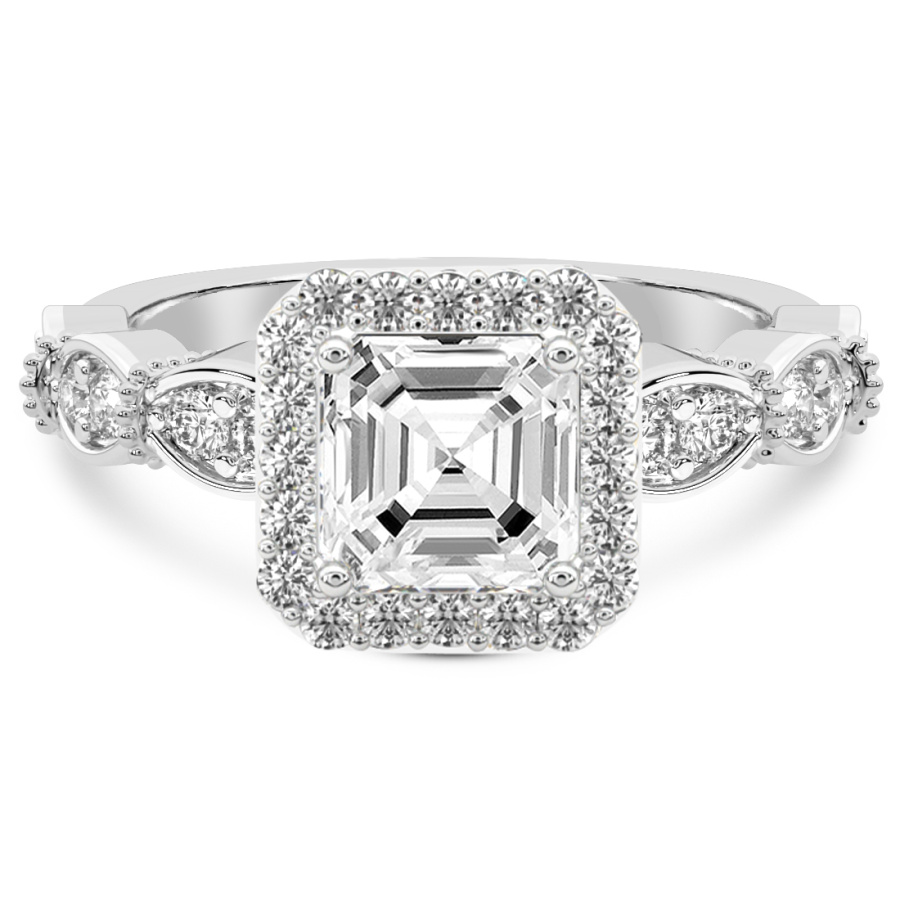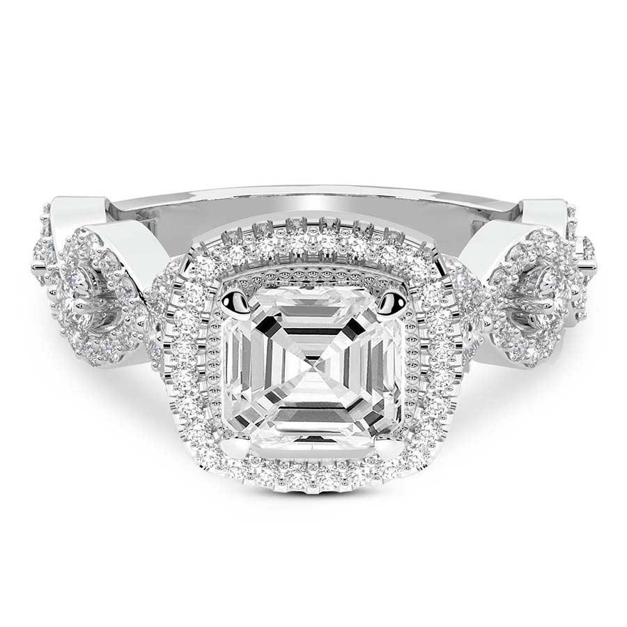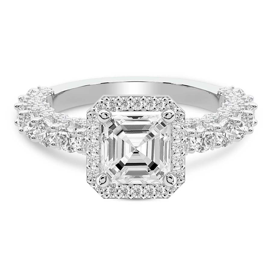 This Savannah Halo Lab Diamond Ring is a Asscher shape ring Engagement type 18k White Gold